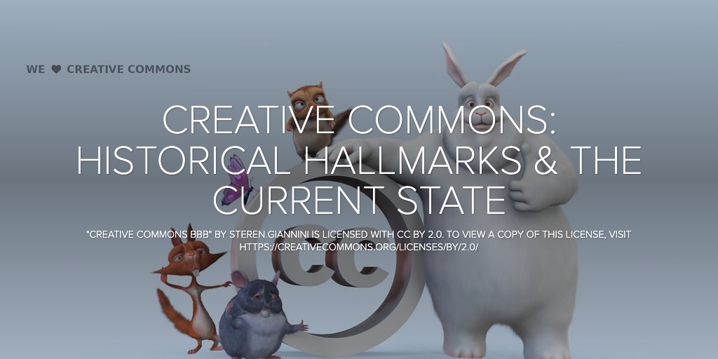 Attributions and License: "Creative Commons: Historical Hallmarks & the Current State," licensed CC BY 4.0, is a derivative of the September 2020 Creative Commons Certificate Course by Creative Commons, also licensed CC BY 4.0. DeeAnn Ivie adapted content from the Creative Commons Certificate Course Unit 1 on 1.1 The Story of Creative Commons and 1.2 Creative Commons Today, adding it to her website of Historical Hallmarks.