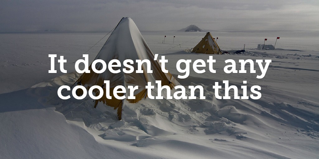 📷 Cover image: Typical field camp in Antarctica showing how tents get buried by blowing snow. Once buried, the tent is extremely safe and unlikely to be carried away by strong winds, but digging out can be a problem © Tim Burton