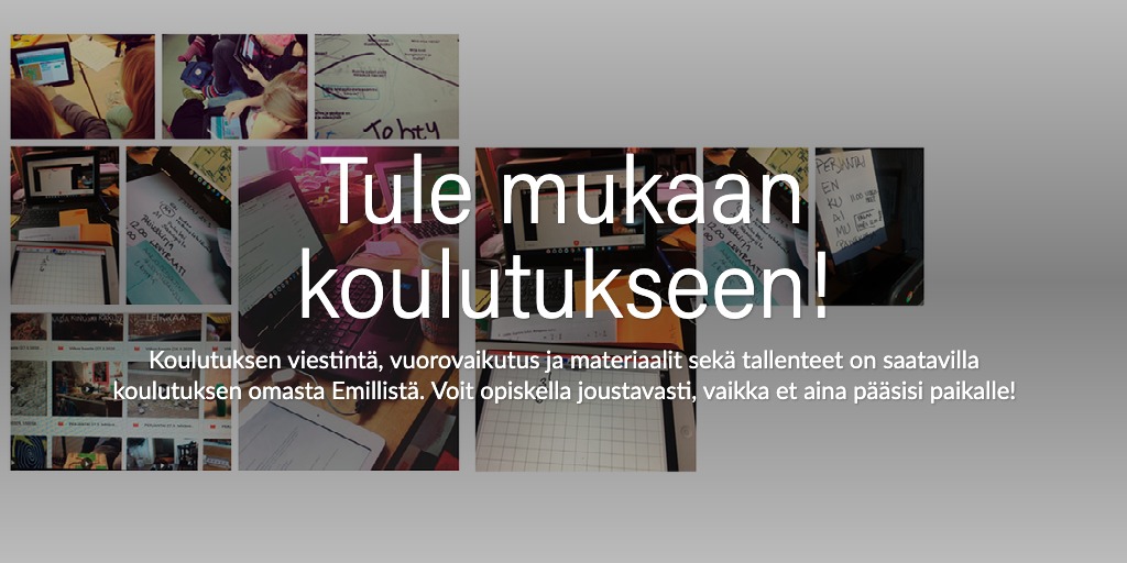 Koulutuksen viestintä, vuorovaikutus ja materiaalit sekä tallenteet on saatavilla koulutuksen omasta Emillistä. Voit opiskella joustavasti, vaikka et aina pääsisi paikalle.