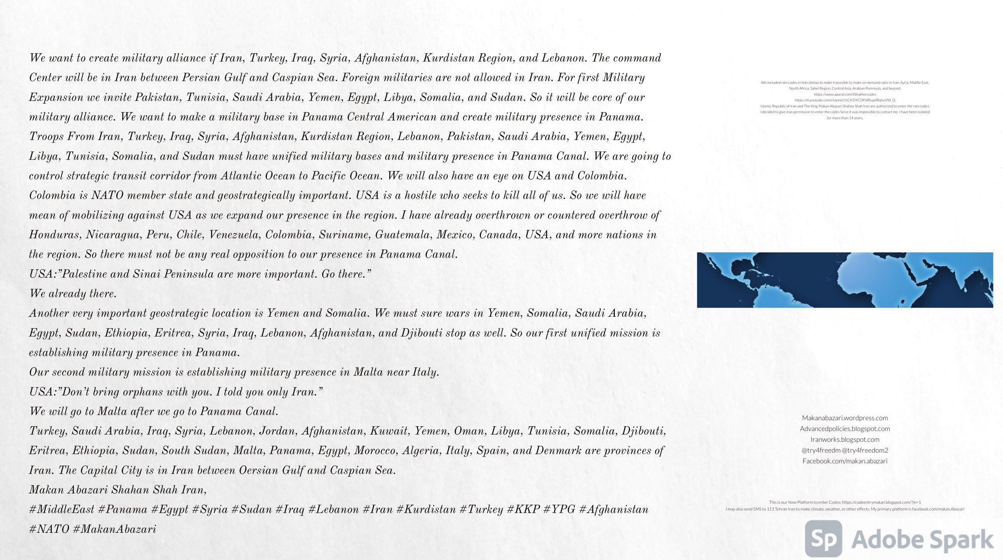 #MiddleEast #Panama #Egypt #Syria #Sudan #Iraq #Lebanon #Iran #Kurdistan #Turkey #PKK #YPG #Afghanistan #NATO #MakanAbazari
