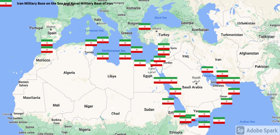 Iran and Revolutionary Guards of Iran must have military presence and Naval Military Presence in Persian Gulf, Yemen, Oman, Bob Al-Mandib, Somalia, Saudi Arabia, Sudan, Somaliland, Eritrea, Djibouti, Ethiopia, Egypt, Palestine, Lebanon, Israel, Bosphur, Turkey, Greece, Algeria, Libya, Italy, Tunisia, Sicily, Suez Canal, Sinai, Gaza, Bob Al-Mandib, Sicilian Channel, Strait of Hormuz, Gibraltar, France, Spain, Morroco, Malta, Cyprus, and Socotra.