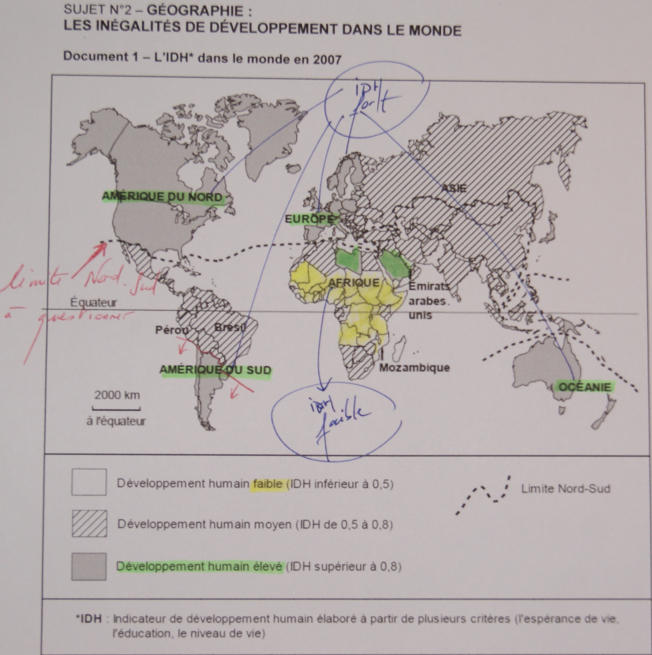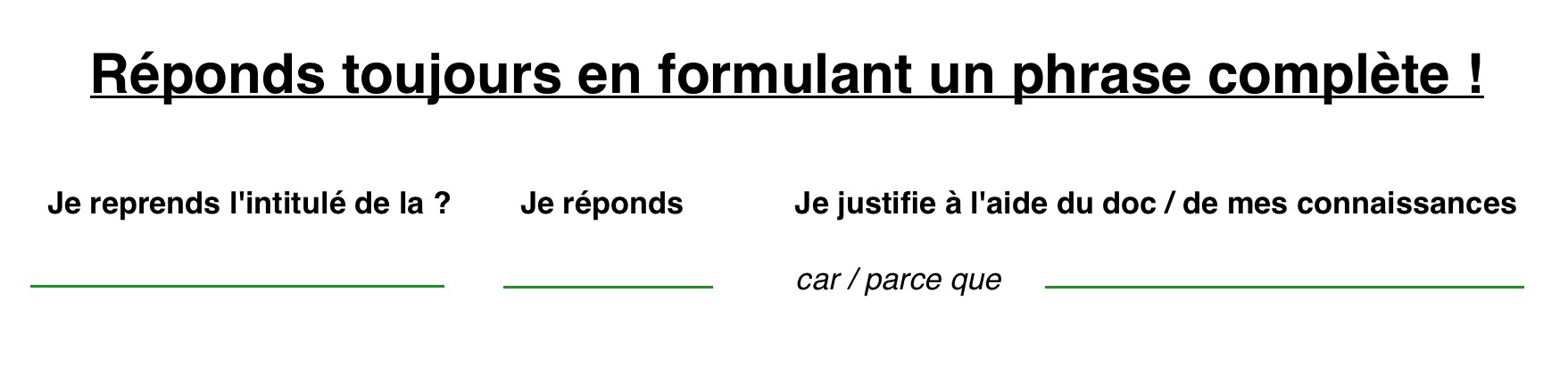 Avant de répondre au propre, il ne faut pas hésiter à écrire sur la feuille d’examen, à faire des flèches, à souligner, à entourer, … Ainsi, on repère les éléments importants du document et on réveille les connaissances du cours.