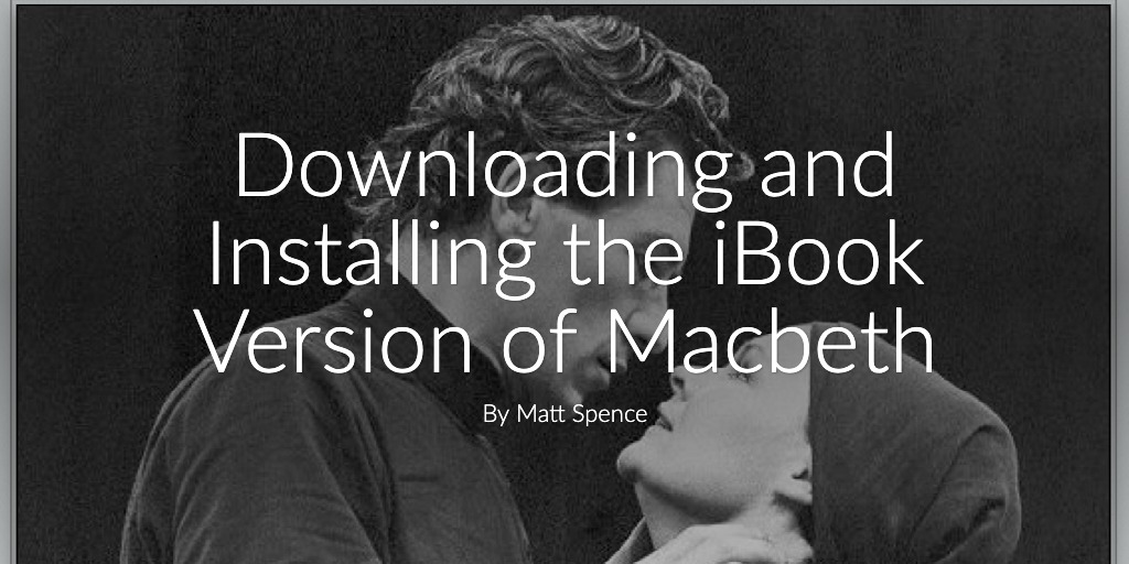 Several years ago, I created an iBook for Macbeth that I would like to share with each of you. This presentation will tell you how to download and install it on your iPad. This file is big, over a gigabyte, so it might take quite a while for it to download, and it might seem like nothing is happening for a while. Just be patient. If you follow the steps, everything will be fine.