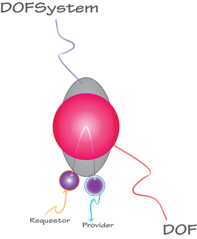 - Provider. Like the Requestor, it is a node that is attached to a DOFSystem; but instead of requesting information, the Provider makes that information available—or provides that information—to the Requestor. (Here, too, you can attach as many Providers as you need.)
