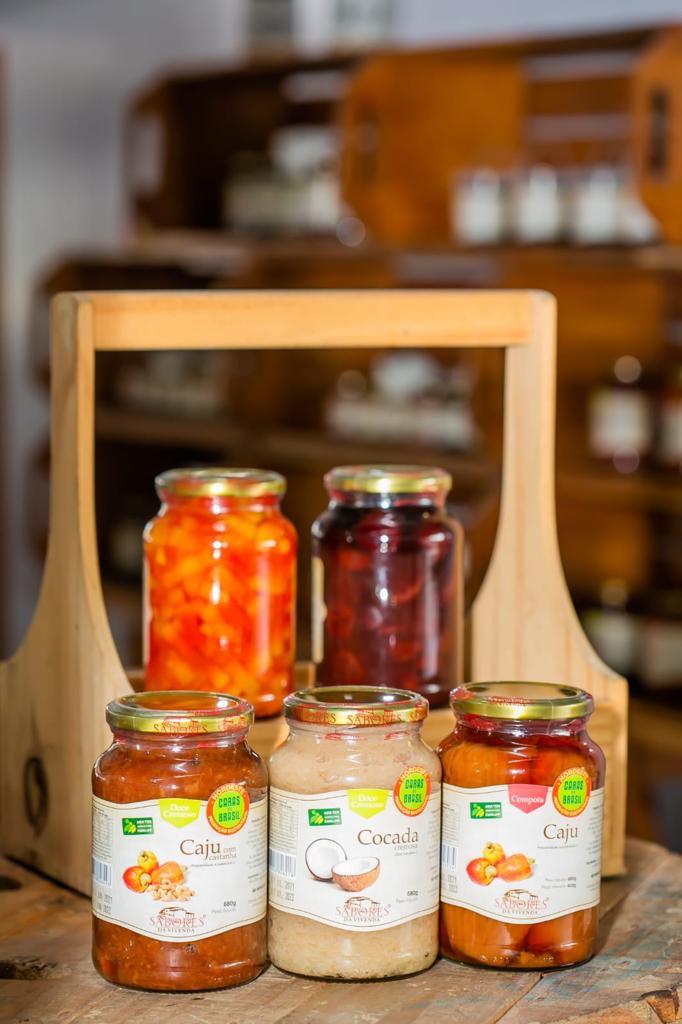 Pra se ter uma ideia da criatividade deles, somente tendo o caju como base, produzem compota de caju, caju-ameixa, doce cremoso de caju, doce cremoso de caju com castanha, geleia de caju com pimenta rosa e geleia de caju.