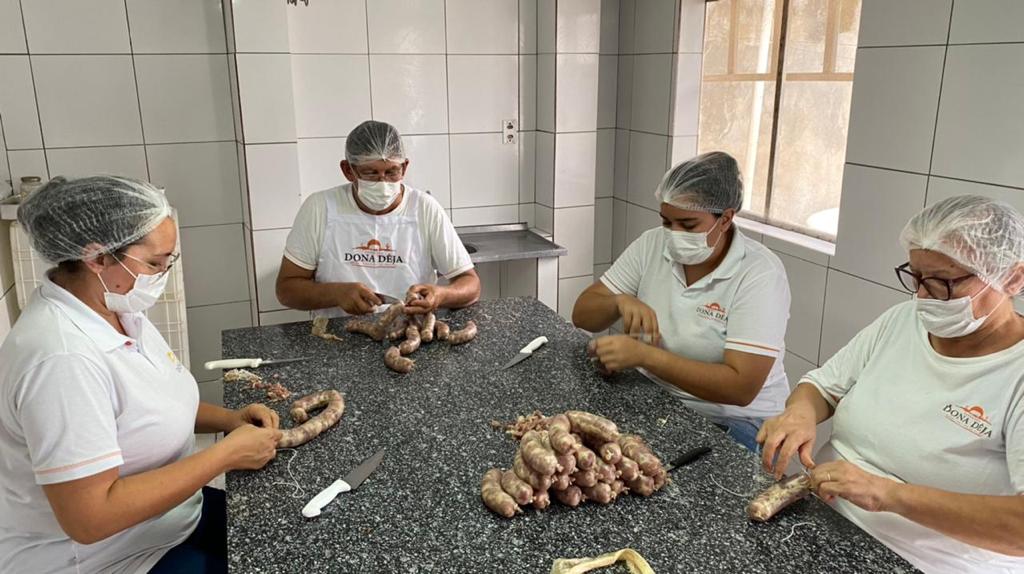 O modo de fazer tradicional da linguiça do sertão é trabalhoso, leva tempo.