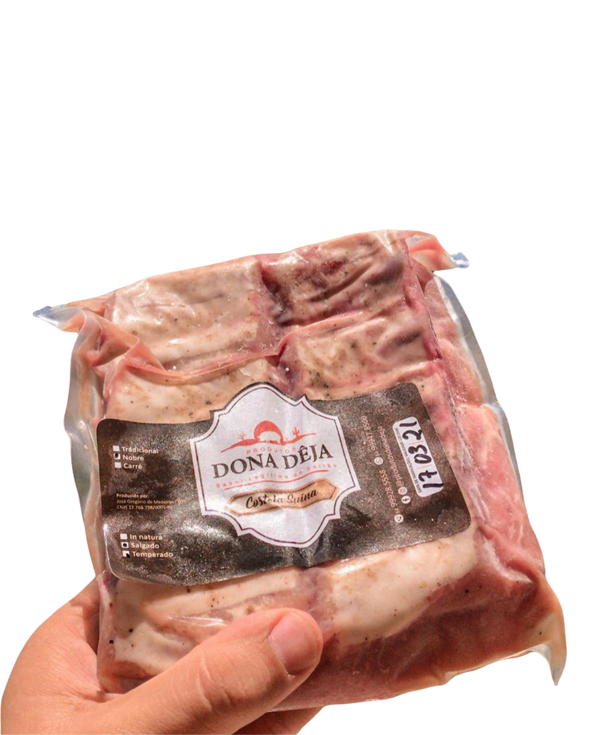 Segundo a filha Mônica, o ponto forte dos Produtos Dona Dêja está no tempero que o pai aplica nas carnes.