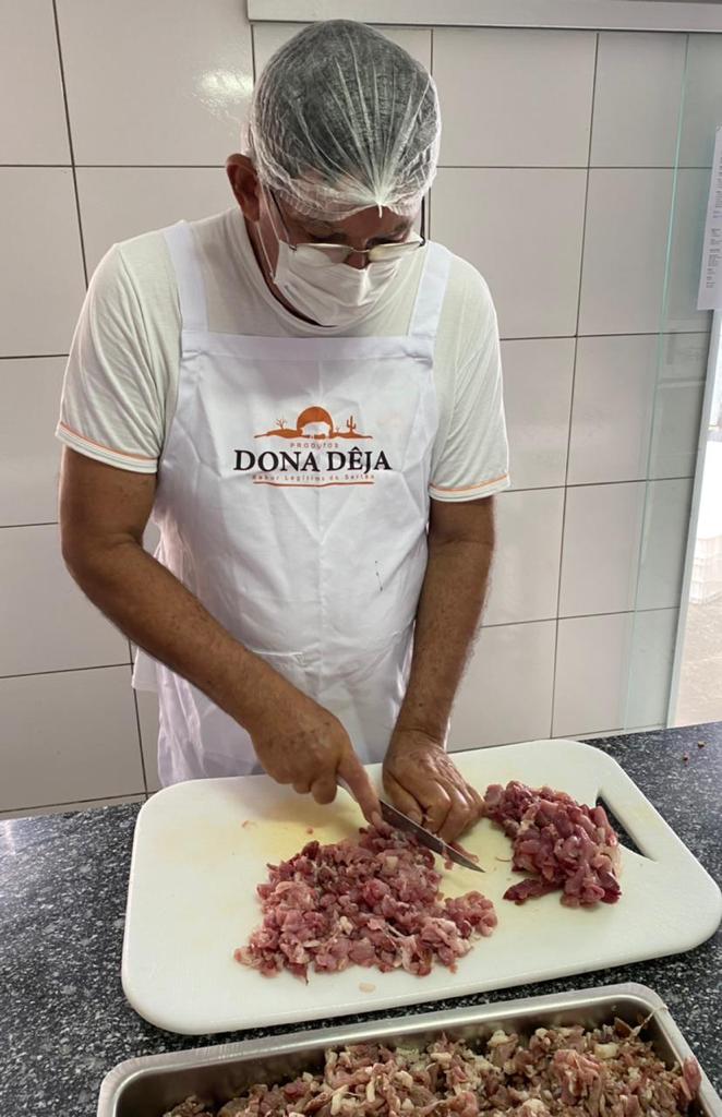 Desde o abate do animal até o produto final são mais de 24 horas. Uma tradição dificilmente preservada, que se mantém viva na Produtos Dona Dêja, empresa familiar de Caicó, capital do Seridó.