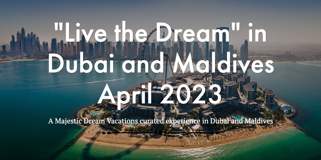 Join Majestic Dream Vacations on this Once in a Lifetime experience as she take flight for a curated 8 Day experience in Dubai with an option for Maldives.