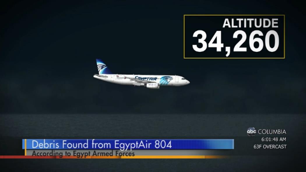 Egypt Air Flight 804 left Charles De Gaulle Airport in Paris France on its way to Cairo International Airport in Cairo. When 3 hours and 25 minutes into the flight the plane crashed into the Mediterranean Sea at 2:33 Egypt Standard Time on May 19, 2016. All 56 passengers and 10 crew members died.