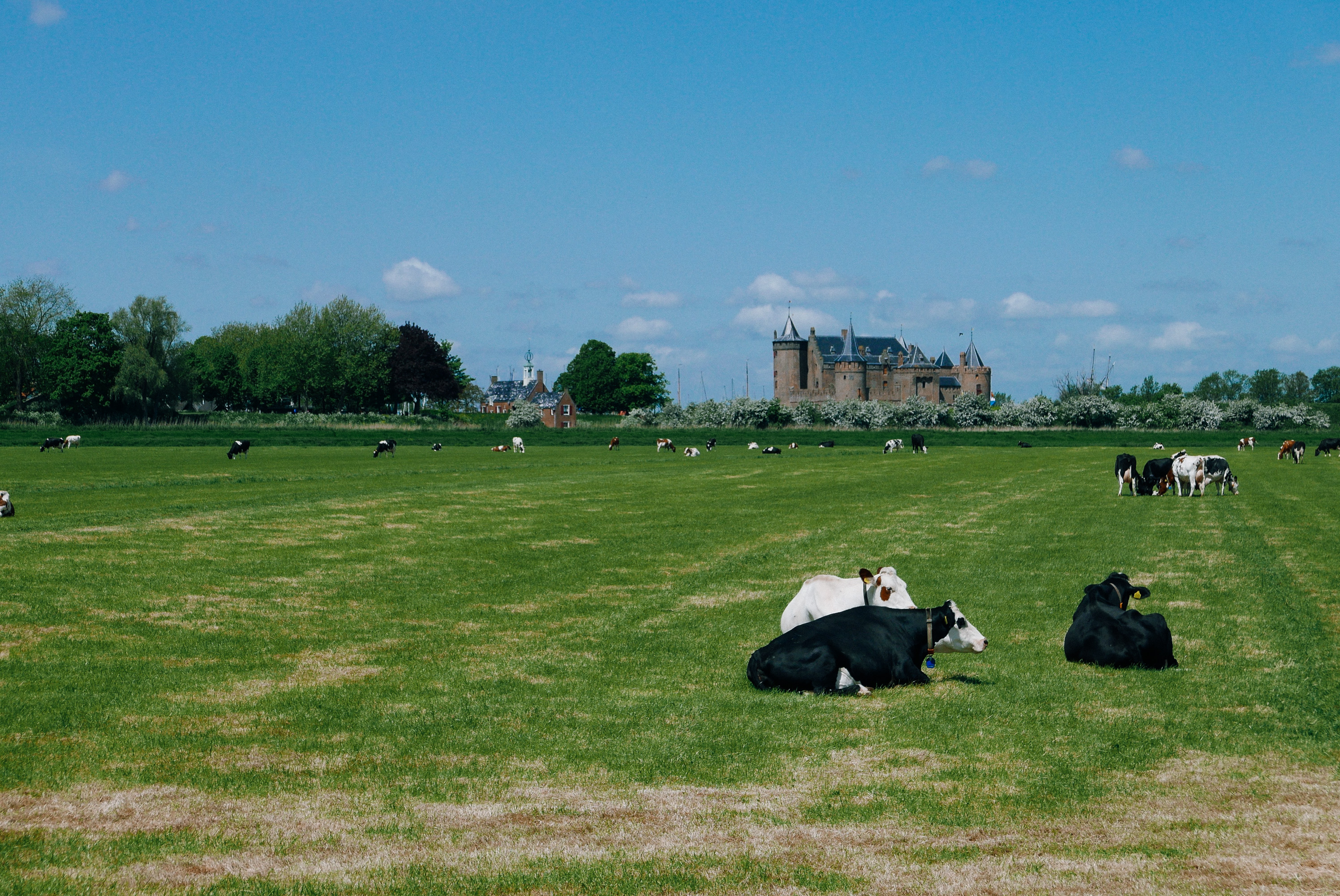 14세기에 지어졌다는 Muiderslot성을 뒷배경으로 한가하게 풀을 띁고있는 소들