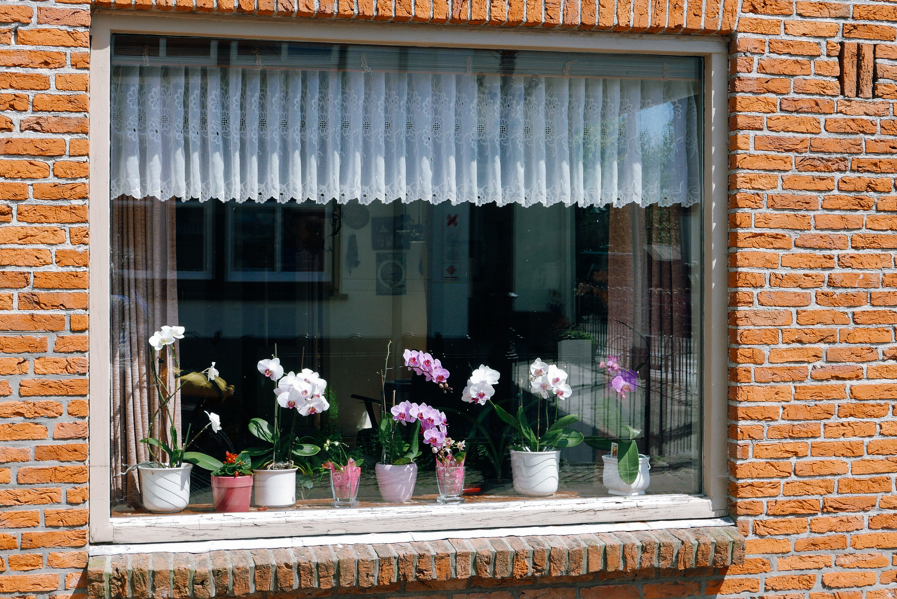 투명한 유리 안으로 커튼과 화초가 조화를 이룬다