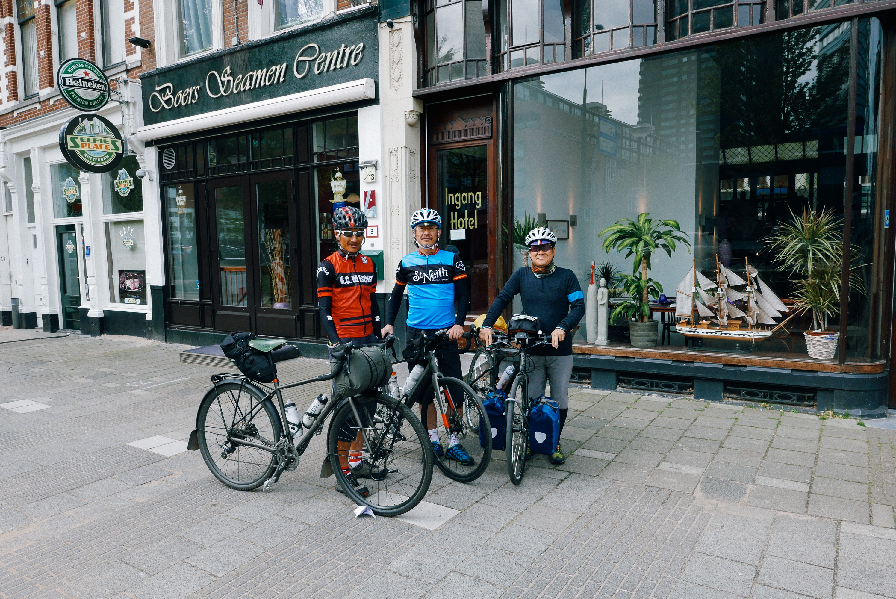 이번 유럽 여행을 기획한 3명이 처음으로 한자리에 모였다. 모두 70년대 청소년 시기에 한국을 떠나 이민간후 현재 각각 다른 나라에서 거주하고 있다. 폴김(왼쪽)은 이탈리아, 지오고 신은 미국, 난(오른쪽) 브라질에 살고 있으면서 자전거 여행을 목적으로 로텔담에서 만났다.