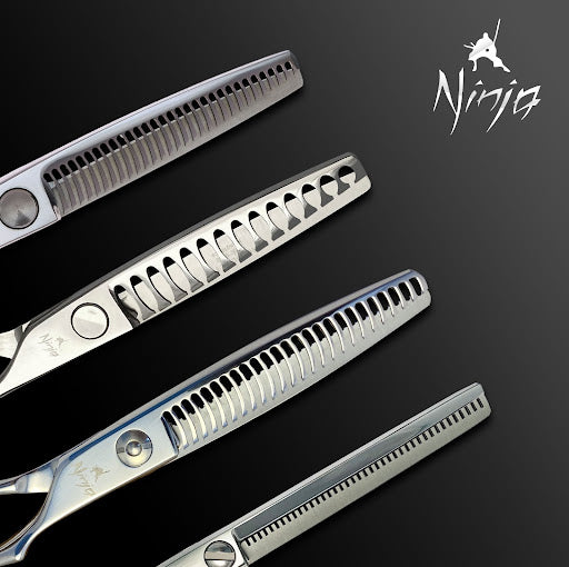 Thinning shears have narrow teeth and narrow spaces on both blades, reducing volume and allowing cut and uncut hairs to blend together rather than stack-up. Hair lays better, and moves better. Want to learn more about this often misunderstood shear? Check out this link from Scissor Tech: