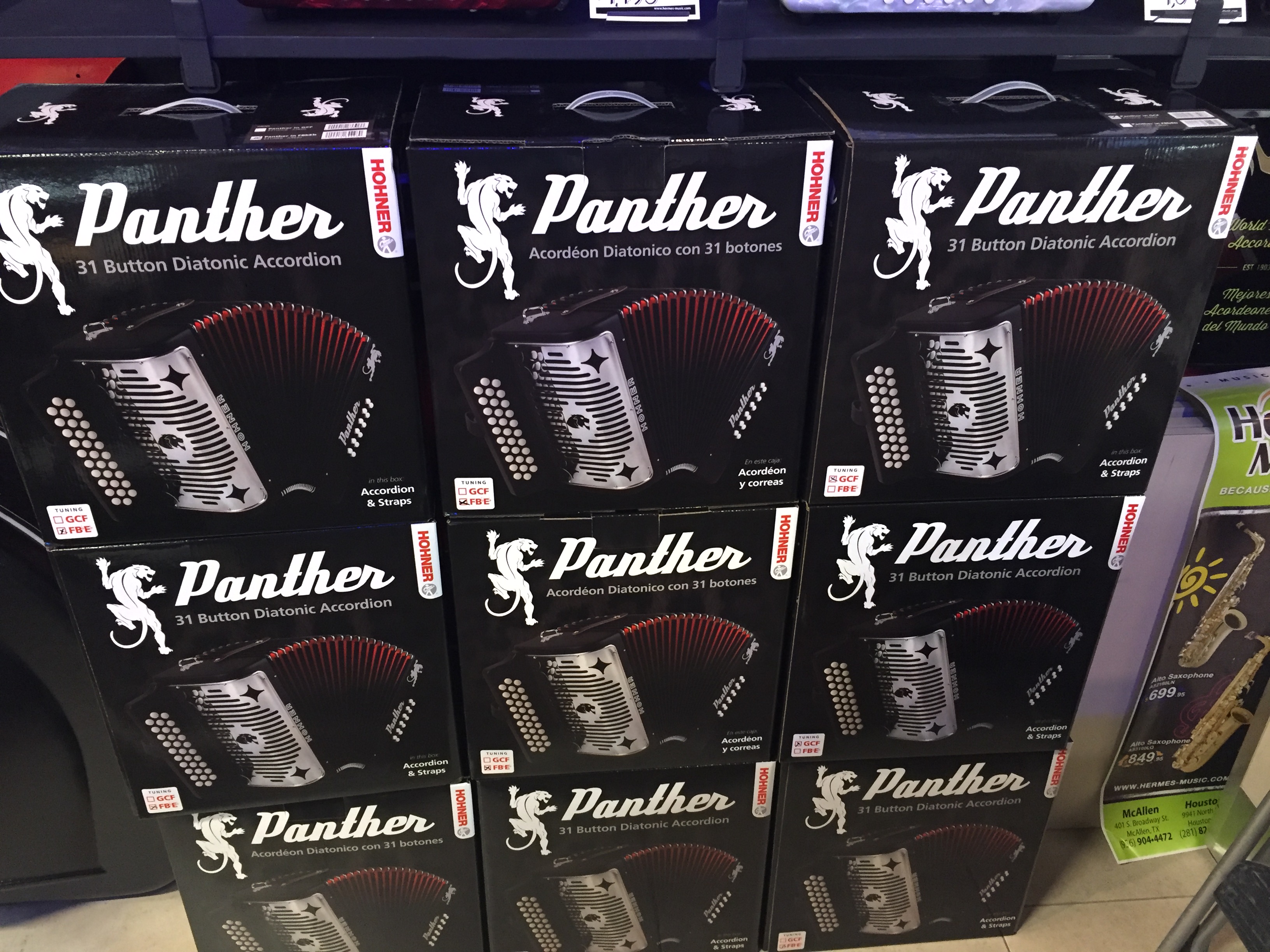 DISPONIBLE! La acordeón más destacada de Hohner, la famosa Panther. Ahora con opciónes en Sol y Fa. Con un muchas unidades disponibles te garantizamos no tan solo la calidad y sonido Hohner pero también el precio más justo, Garantizado!