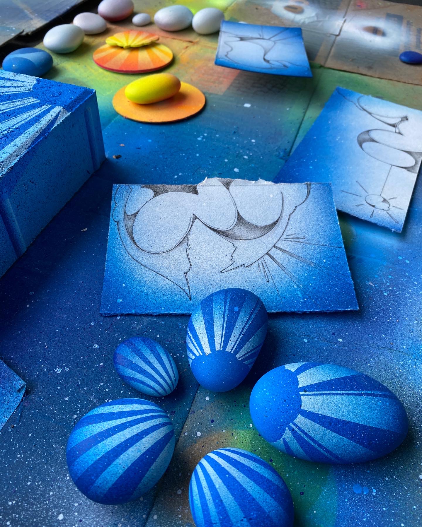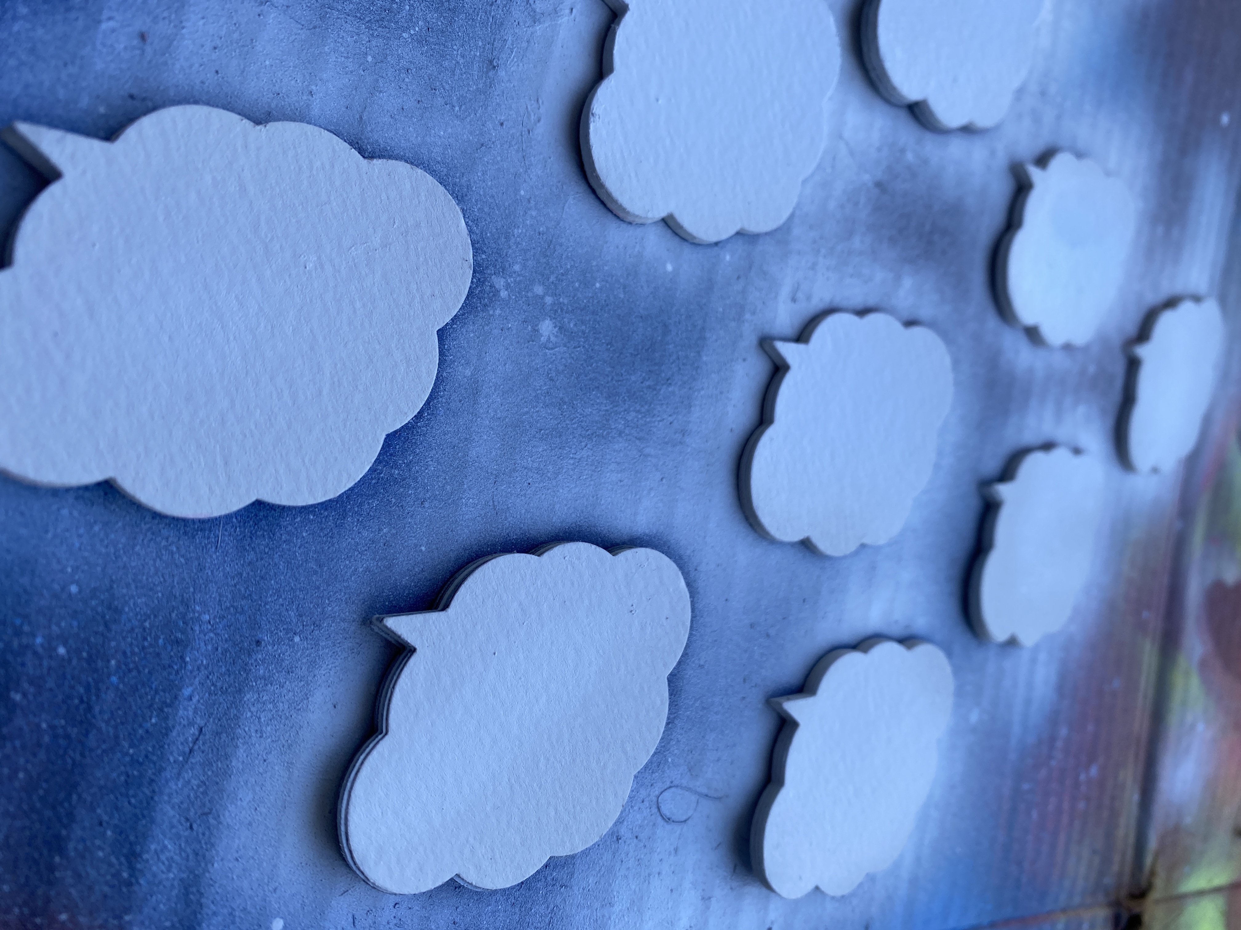The following works are based on this wisdom and are an attempt to see all things, including ourselves, in the cloud- like space of transformation and interdependence. They invite you to bring that space into present mind through color and form.