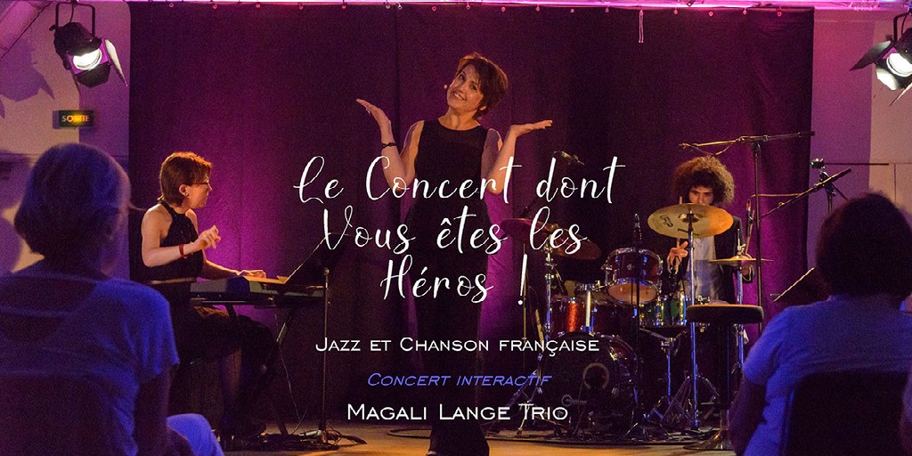 Magali Lange, accompagnée d' Aude Moralès-Robin, pianiste, et Erwan Morisse, batteur, met ses talents de chanteuse et de cheffe de choeur au service de ce concert interactif : elle chante.... et fait chanter le public!