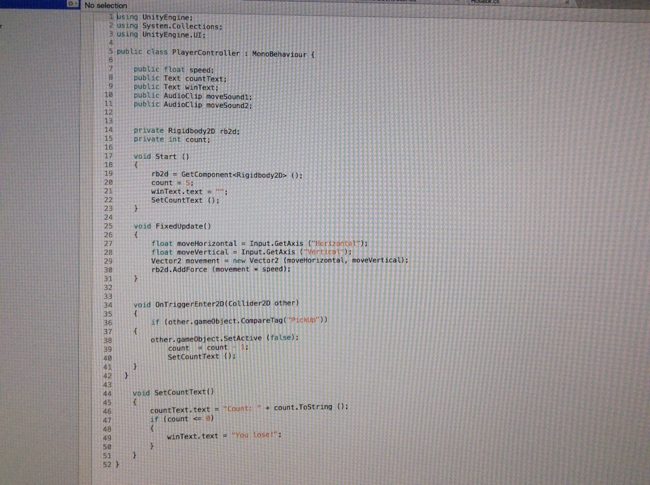 In this section I will be the PlayerController script and how it will help me with my solution