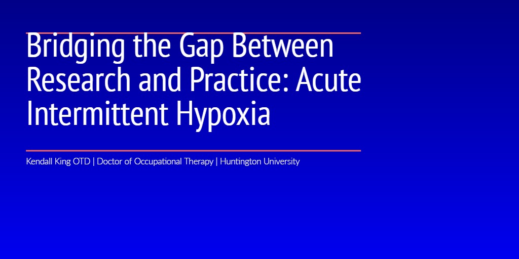 The purpose of this project is to facilitate the use of intermittent hypoxia as a treatment modality option for those recovering from spinal cord injuries and other various neurological traumas. My intent is to educate practitioners on the efficacy of this treatment option in order to advocate for its use in rehabilitation settings within the Parkview system. My plan is to educate and advocate to current practitioners on this treatment through the development of educational resources, such as handouts, info graphs, and furthermore disseminating a comprehensive presentation on AIH to be presented to the inpatient rehabilitation therapists (OT/PT) at Parkview Randalia Fort Wayne.