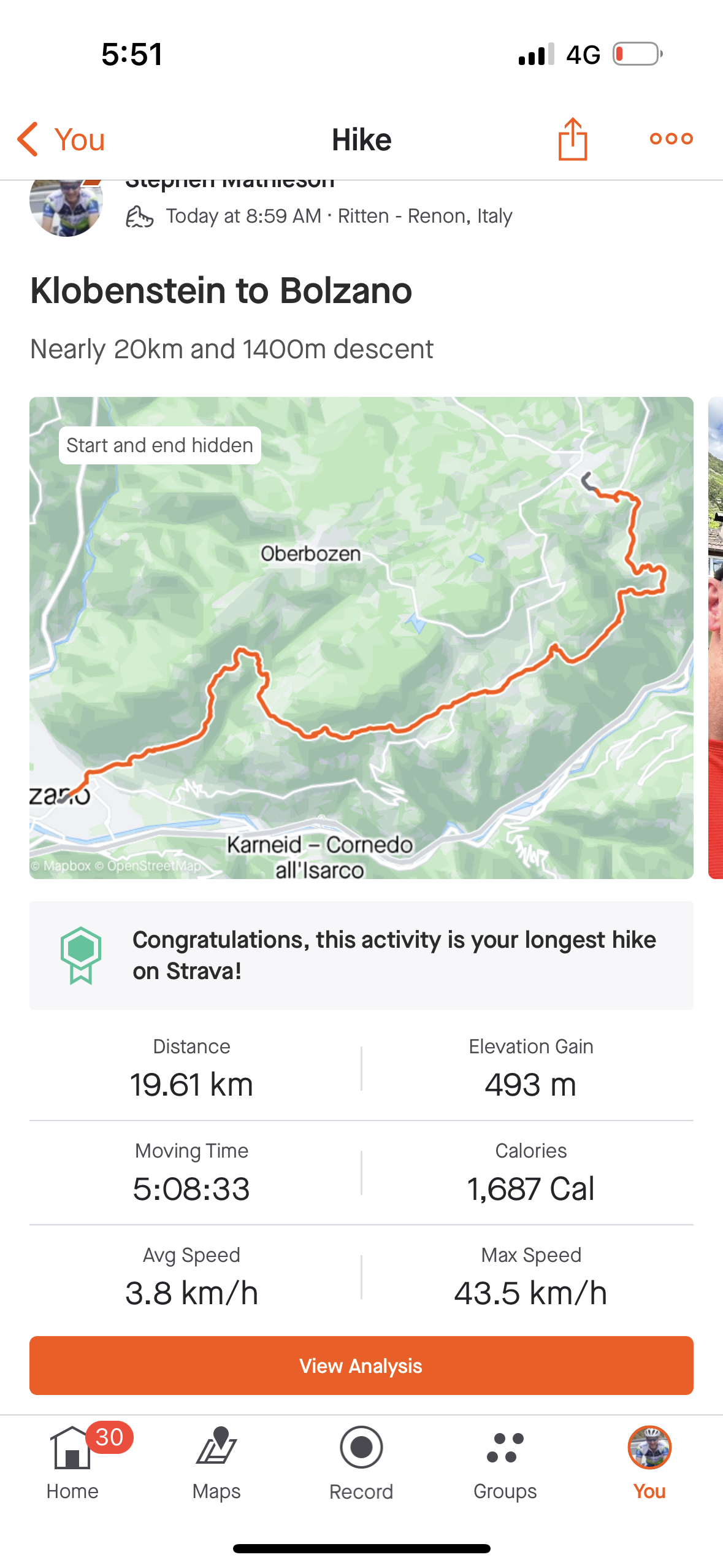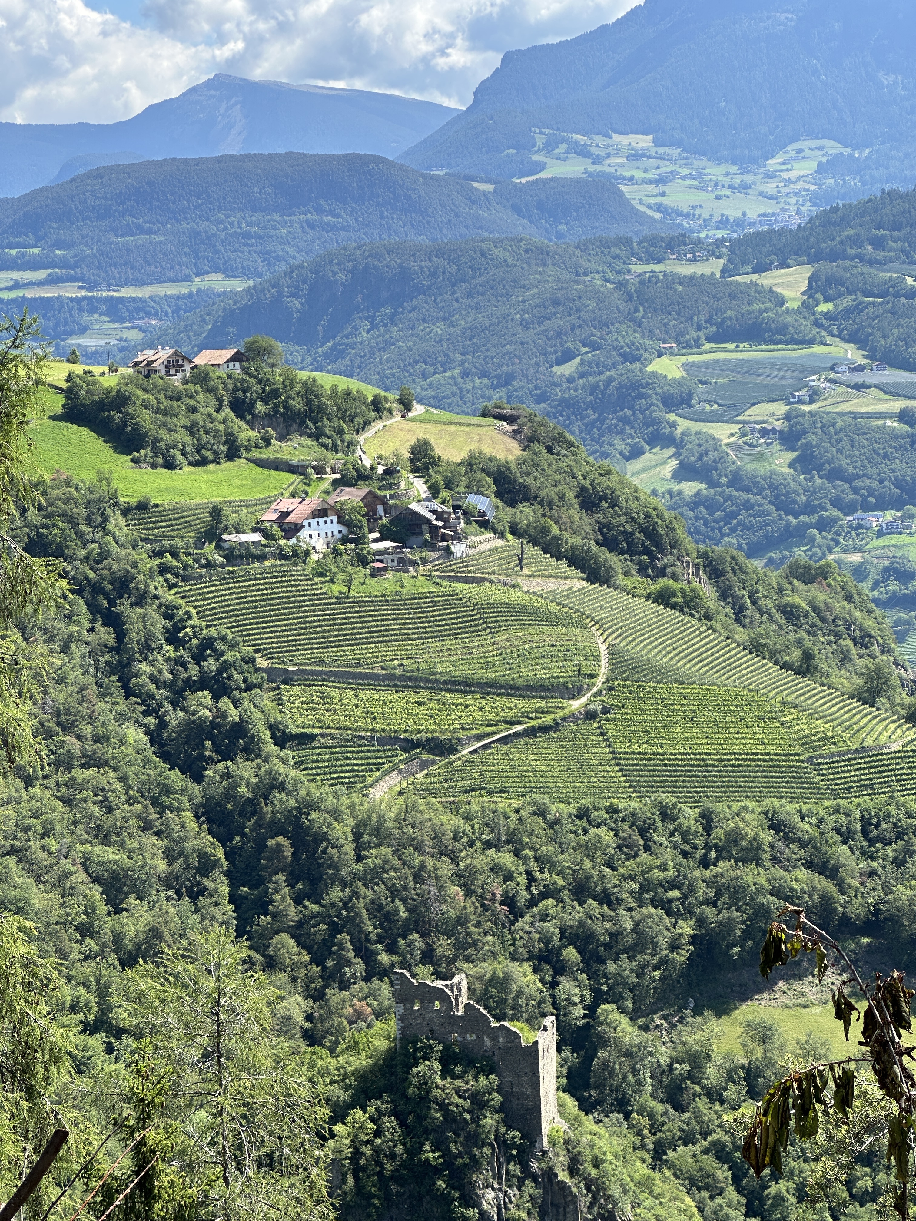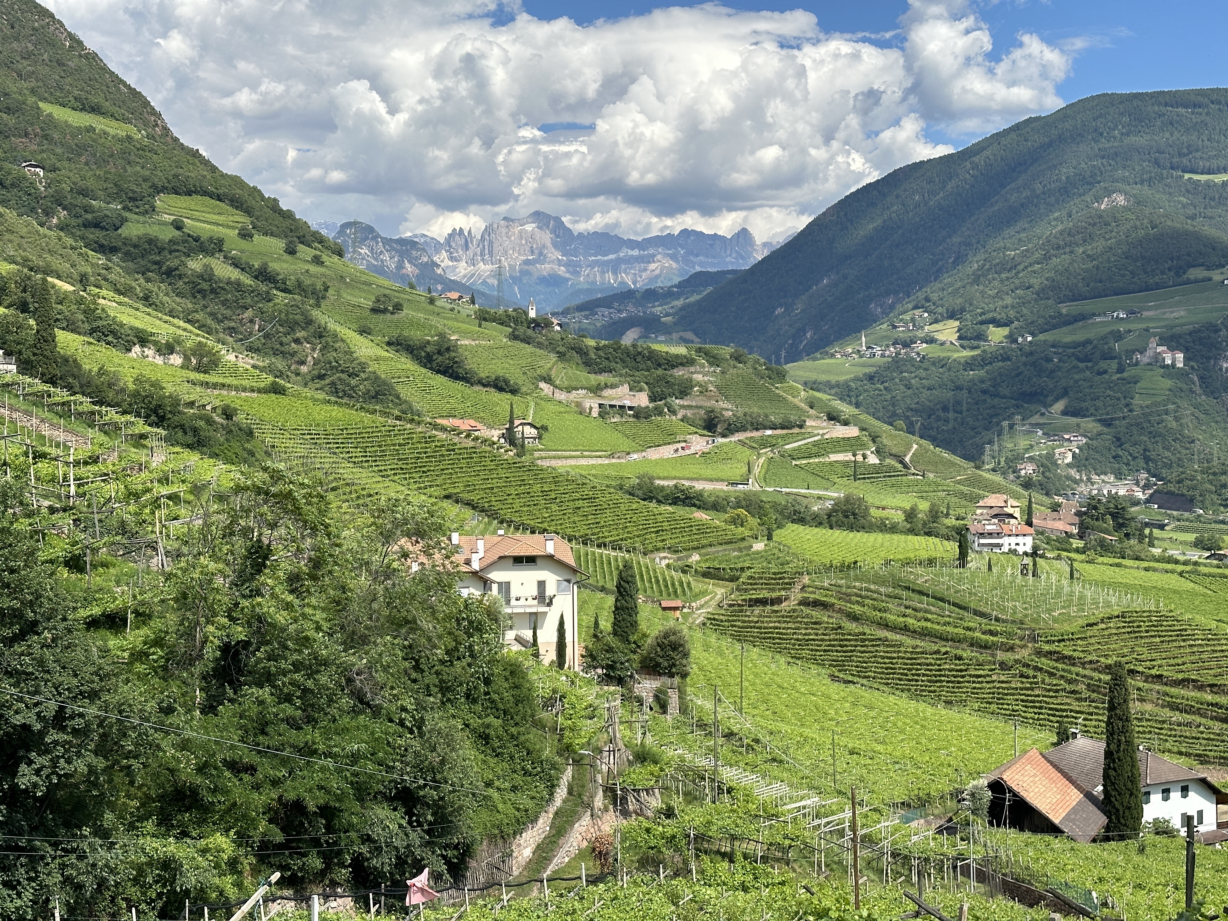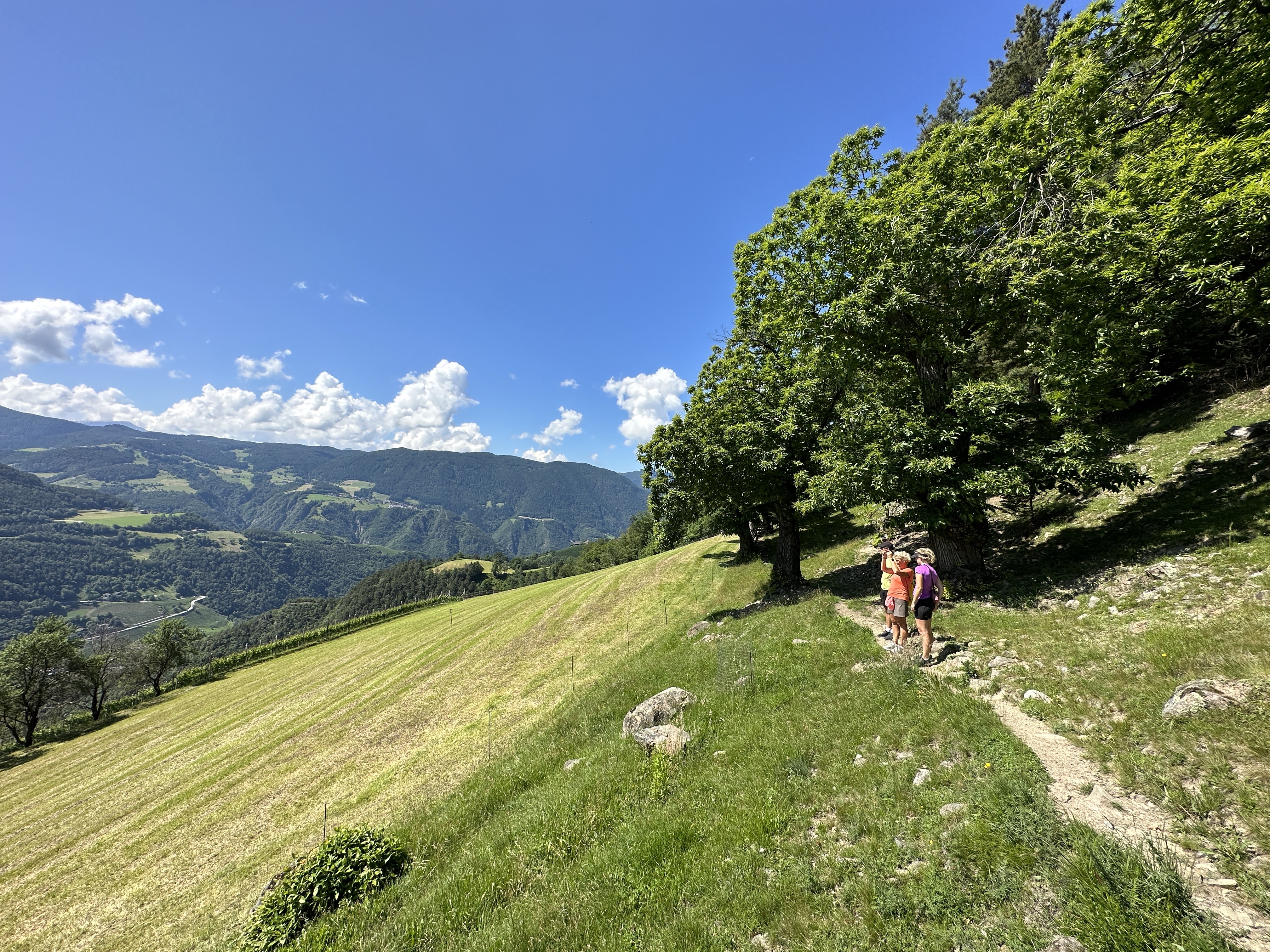 Today however was mostly sunny and as we descended into the valley, the temperatures climbed from typical low 20’s into the high 20’s making it a hot and thirsty steep descent of around 1,400m to reach our final destination of Bolzano.