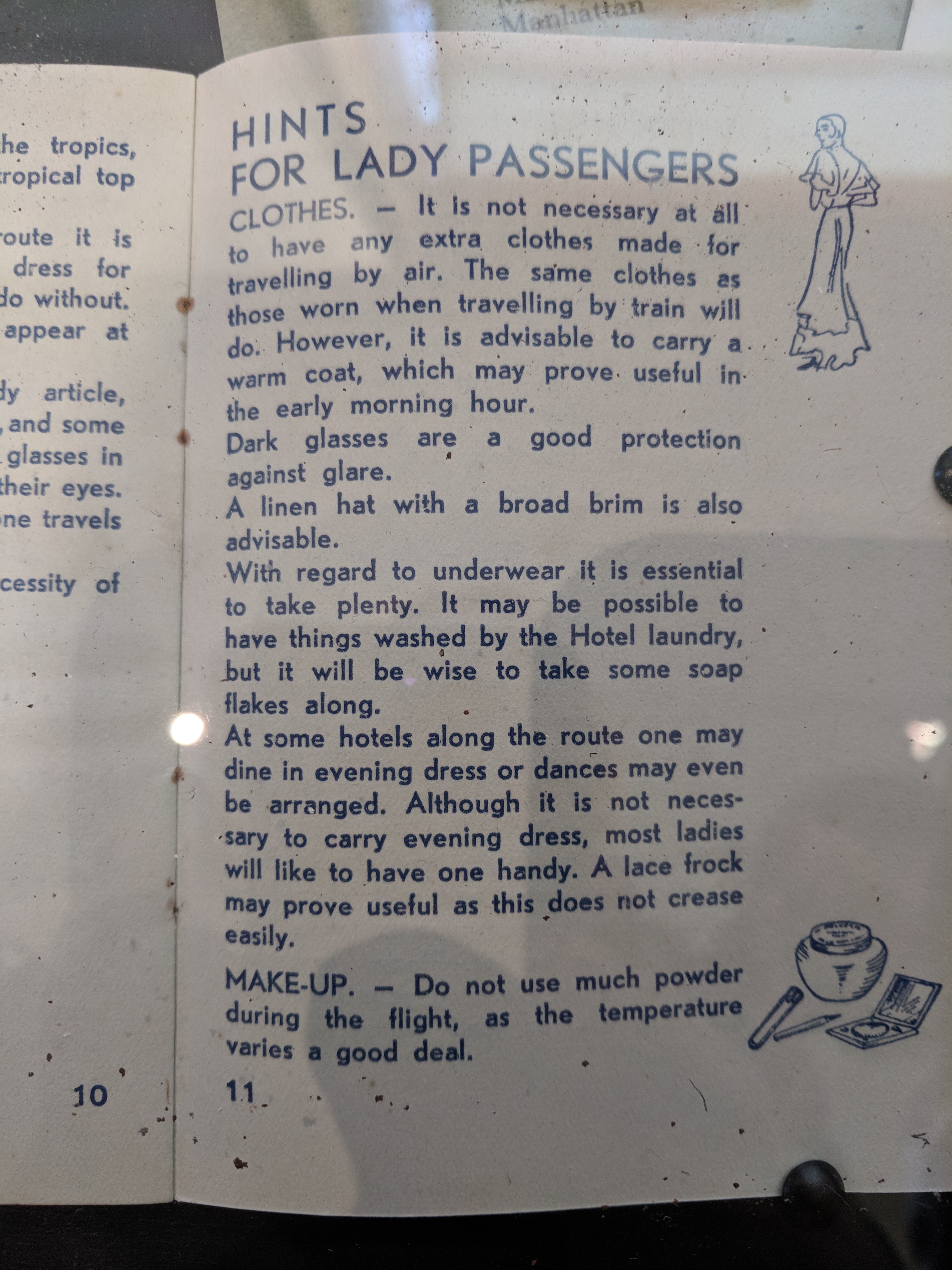 In the luxury planes between the wars, it would take around 2 weeks with loads of stops to get from London to Australia. The addition of a steward was quite a revelation, and their job was to source provisions for the next leg of the journey at every stop. The passengers would stay in the same accomodation as, and dine with, the captain. It all sounds impossibly exotic. I mean I like my fancy pointy-end flights and Neil reckons people want to get from A to B as quickly as possible but fuck that, put me in one of those 2 week jaunts!
