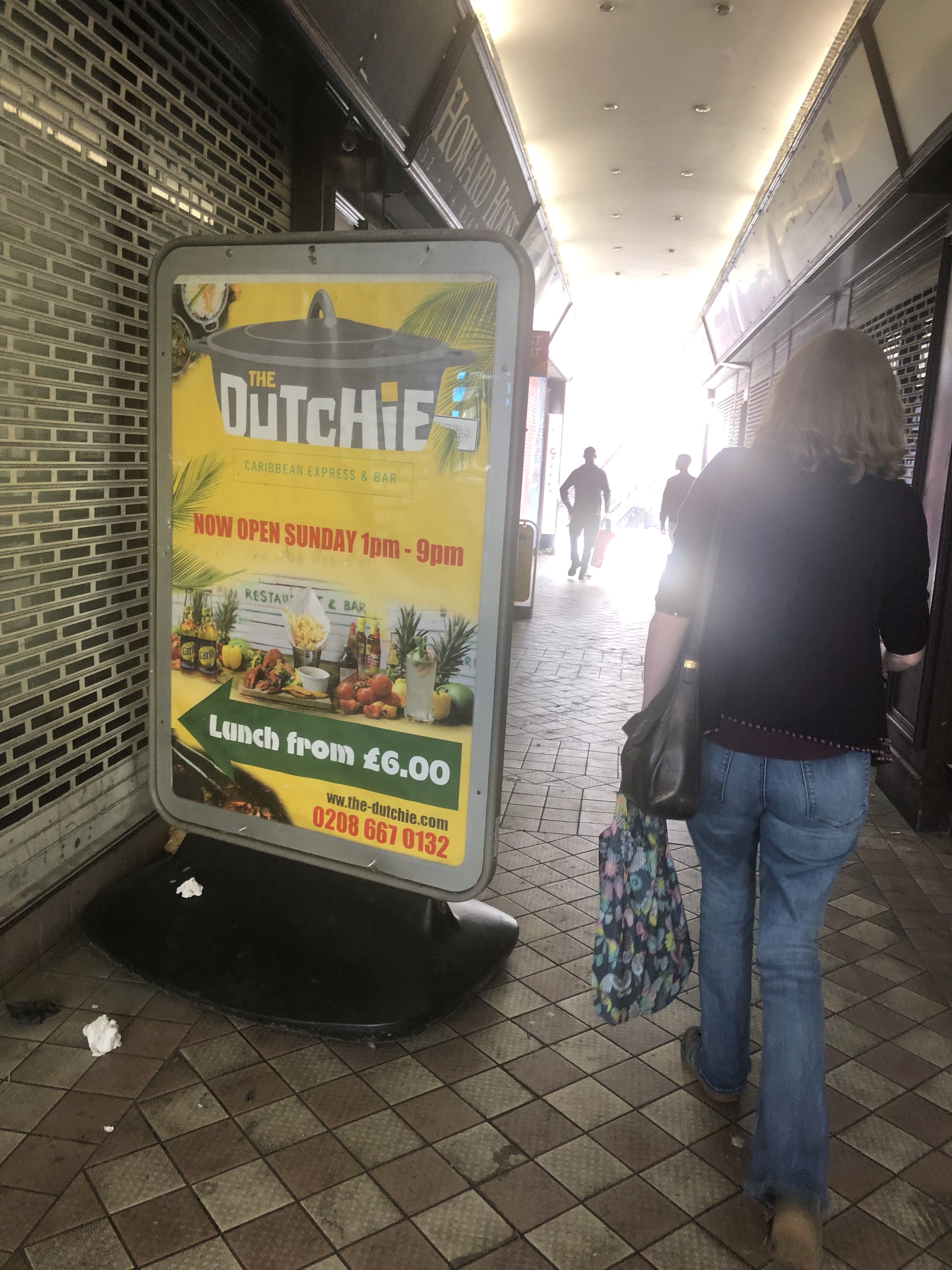 There's not many people about. It's quite a nice place actually. I almost want to play table tennis, but not really. Instead, I am hoping the deliciousness of the food – and it is delicious – will soften Helen's anti-Croydon sentiment, which by now is overflowing, enough that I can convince her we can go find a welcome sign.