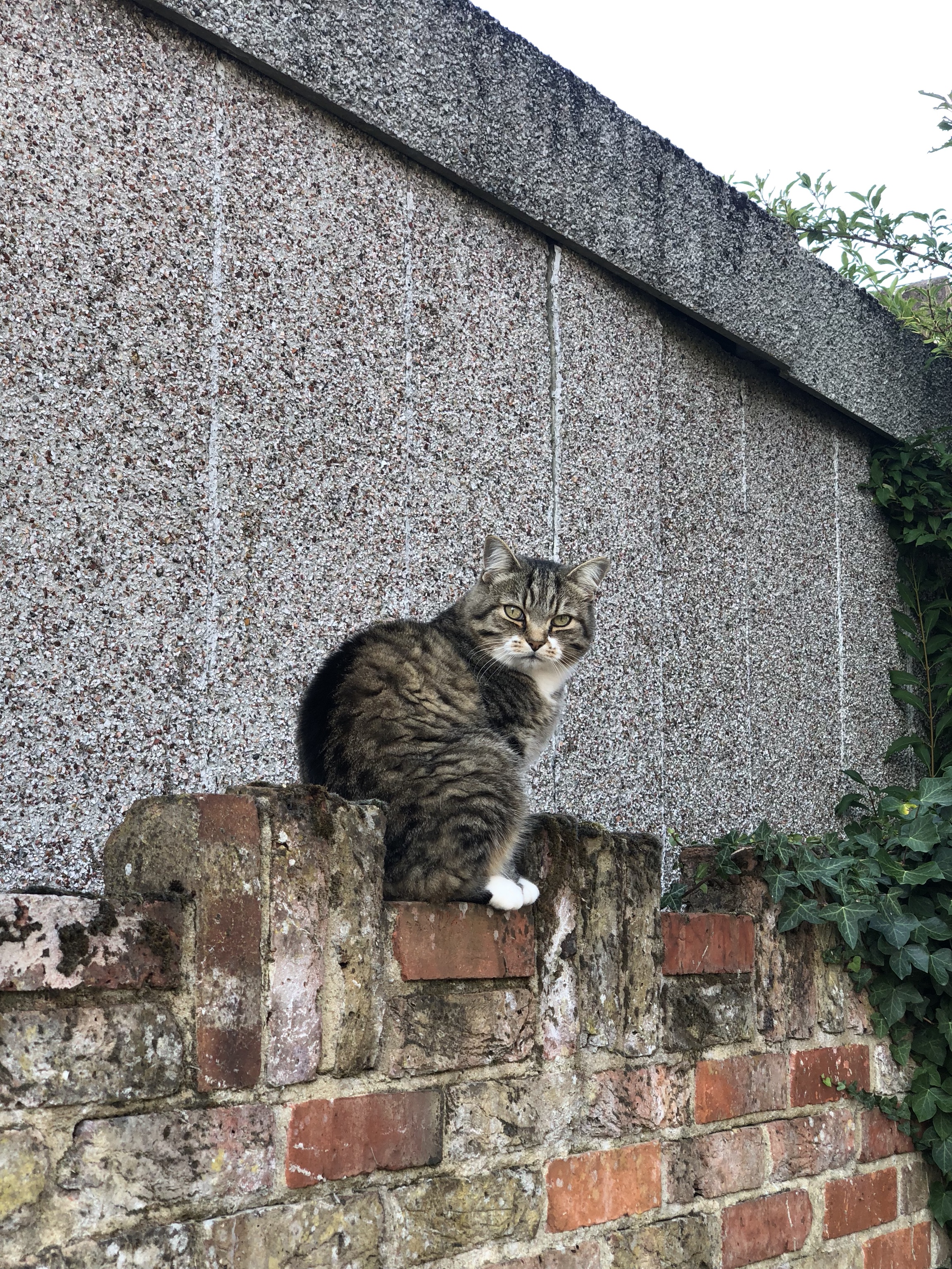 Later, as we prepared to leave the flat proper, he sat down with most of his body in the lower bit of the wall, and his front paws on an upper bit. It was a very funny pose. You'll have to take my word for it though eh.