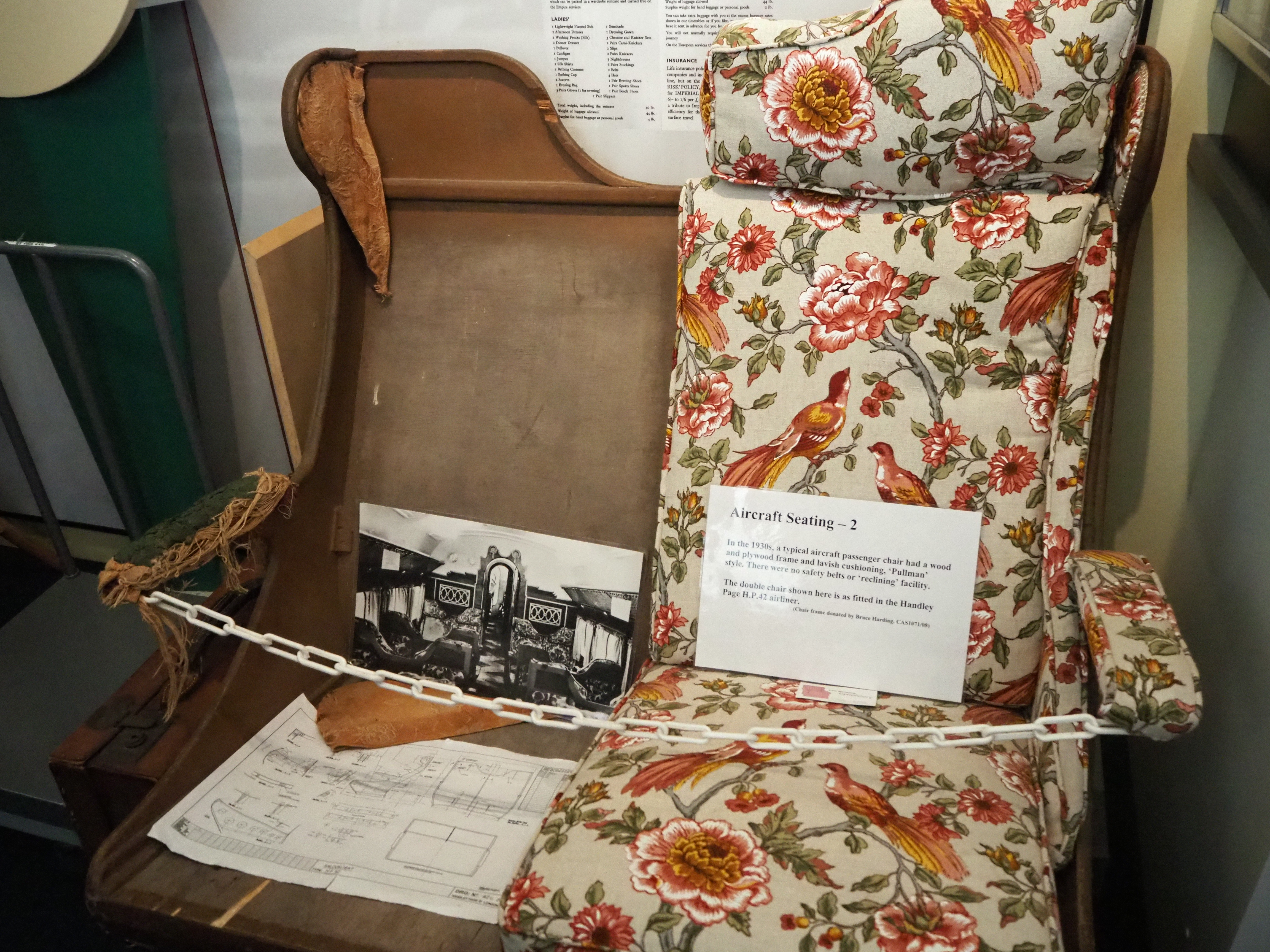It's two floors of small rooms, but really quite interesting. A lot of it is given over to Amy Johnson's exploits – she flew from here numerous times, not just that Oz trip – but there's also loads of excellent paraphernalia of early passenger flight. Like this seat.