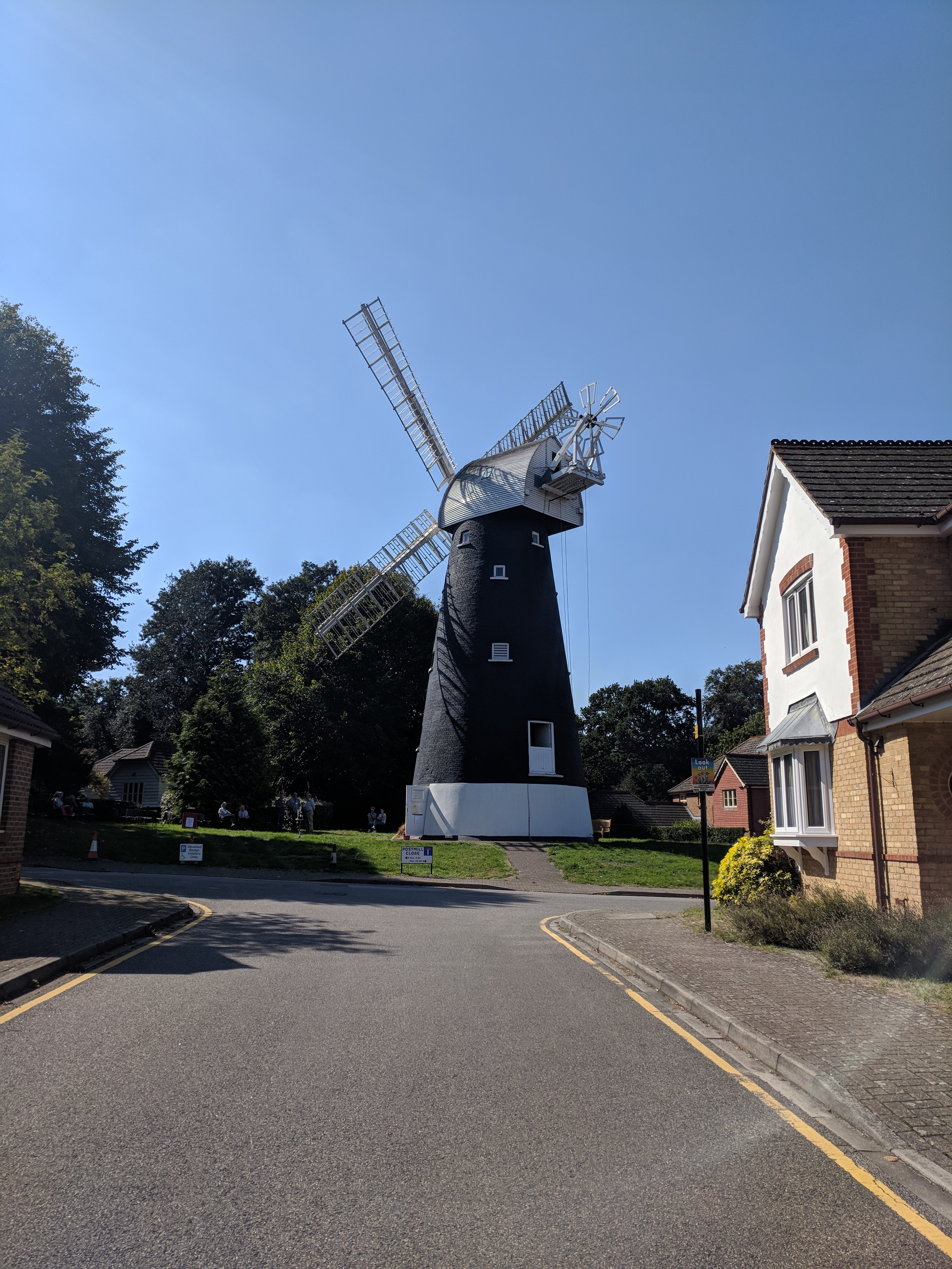 Helen was whatever-the-opposite-of-fascinated-is about all my stories. "I did photocopying for Direct Line there". "I did data entry for Network Southeast there". "Down there is the Wetherspoons where I used to drink alone at lunchtimes". And etc. Past Boxpark and East Croydon and further east, we're on our way to Shirley. There's a windmill around here.