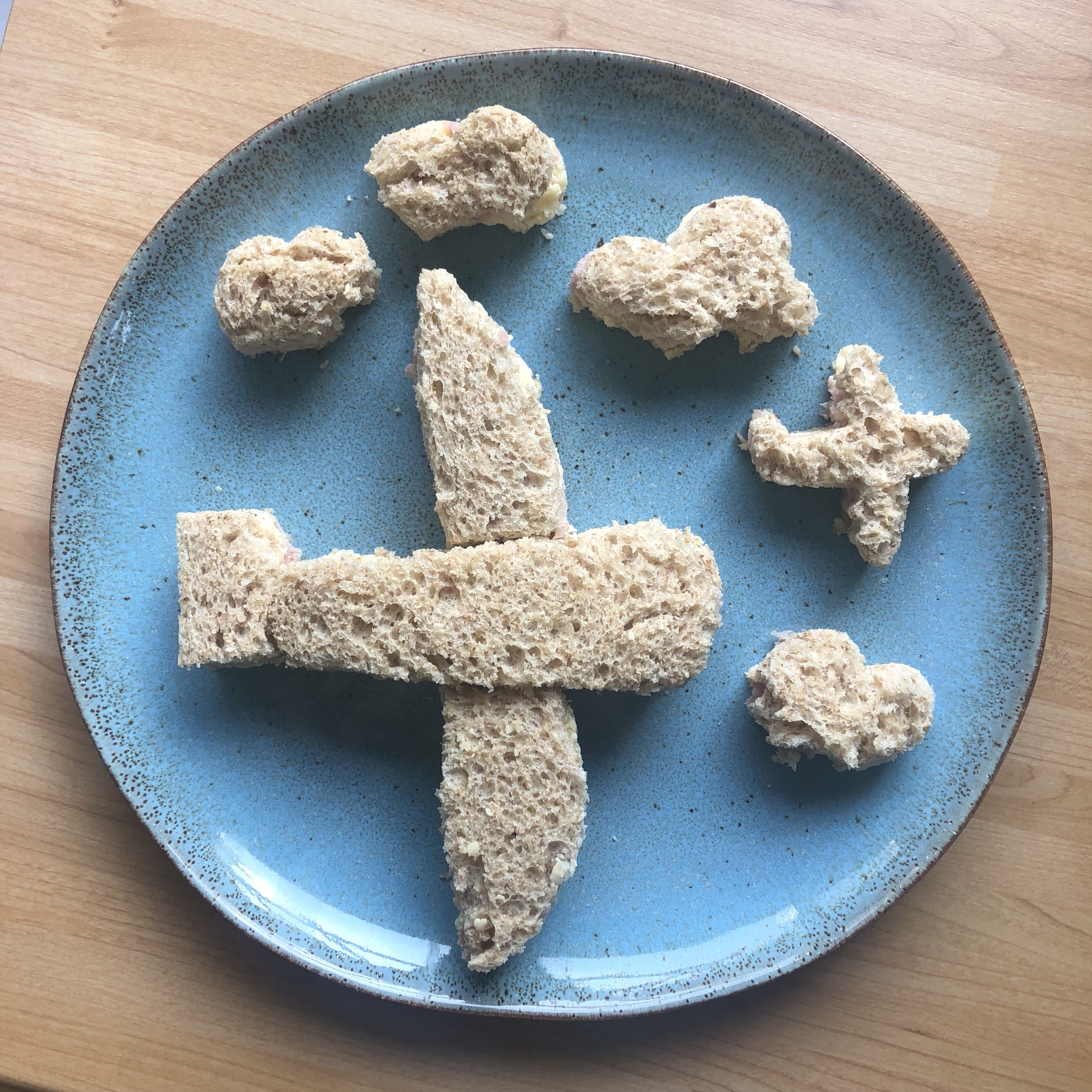 That there is a ham and cheese sandwich in the shape of two planes and some clouds. Because Croydon, see. They were made while I did errands, which largely comprised putting rubbish in wheelie bins while being stared at by "Johnny Manx", our neighbourhood grumpy tail-free cat.