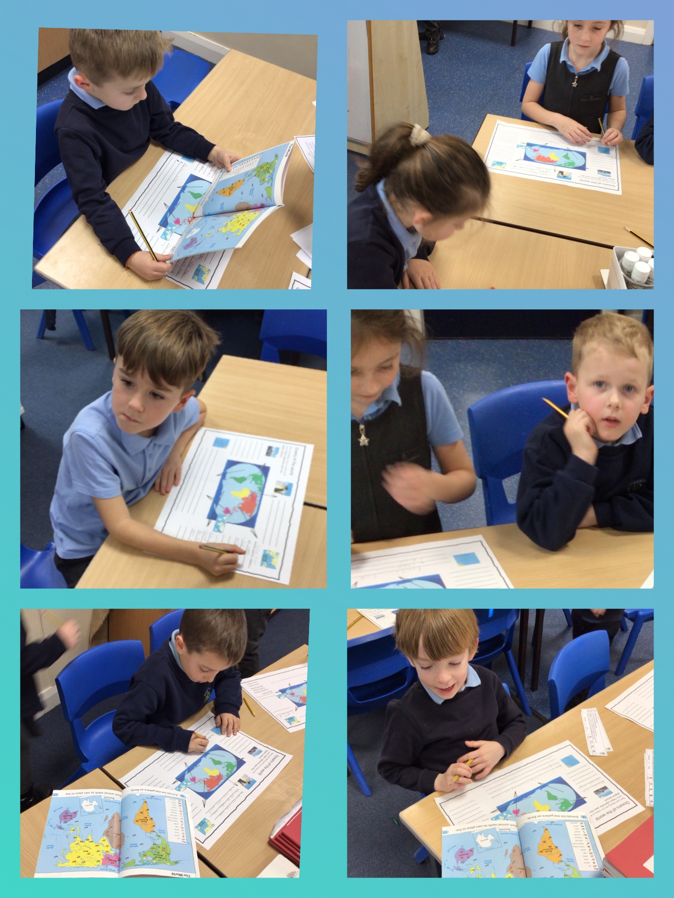 In class we looked at how to use an atlas. We were able to find the 7 continents and 5 oceans.