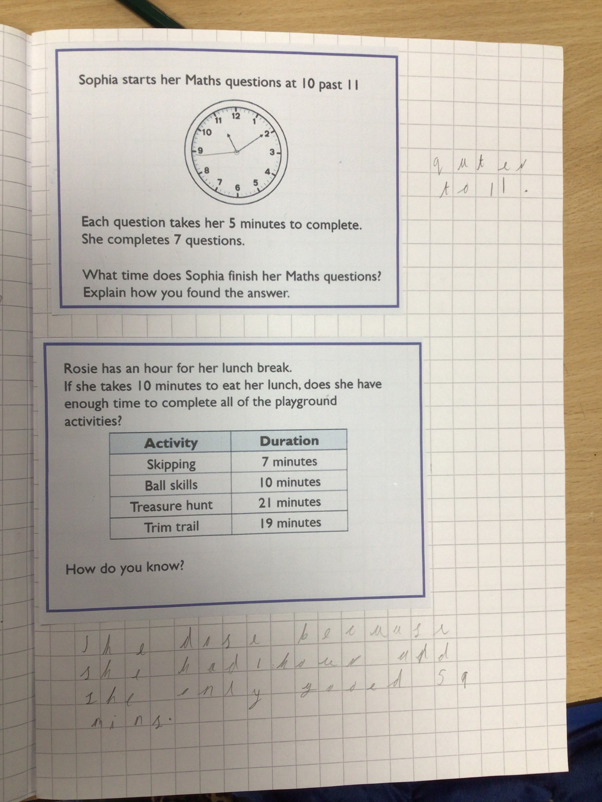 In addition to O’clock and half past, we told the time in 5 minute intervals.