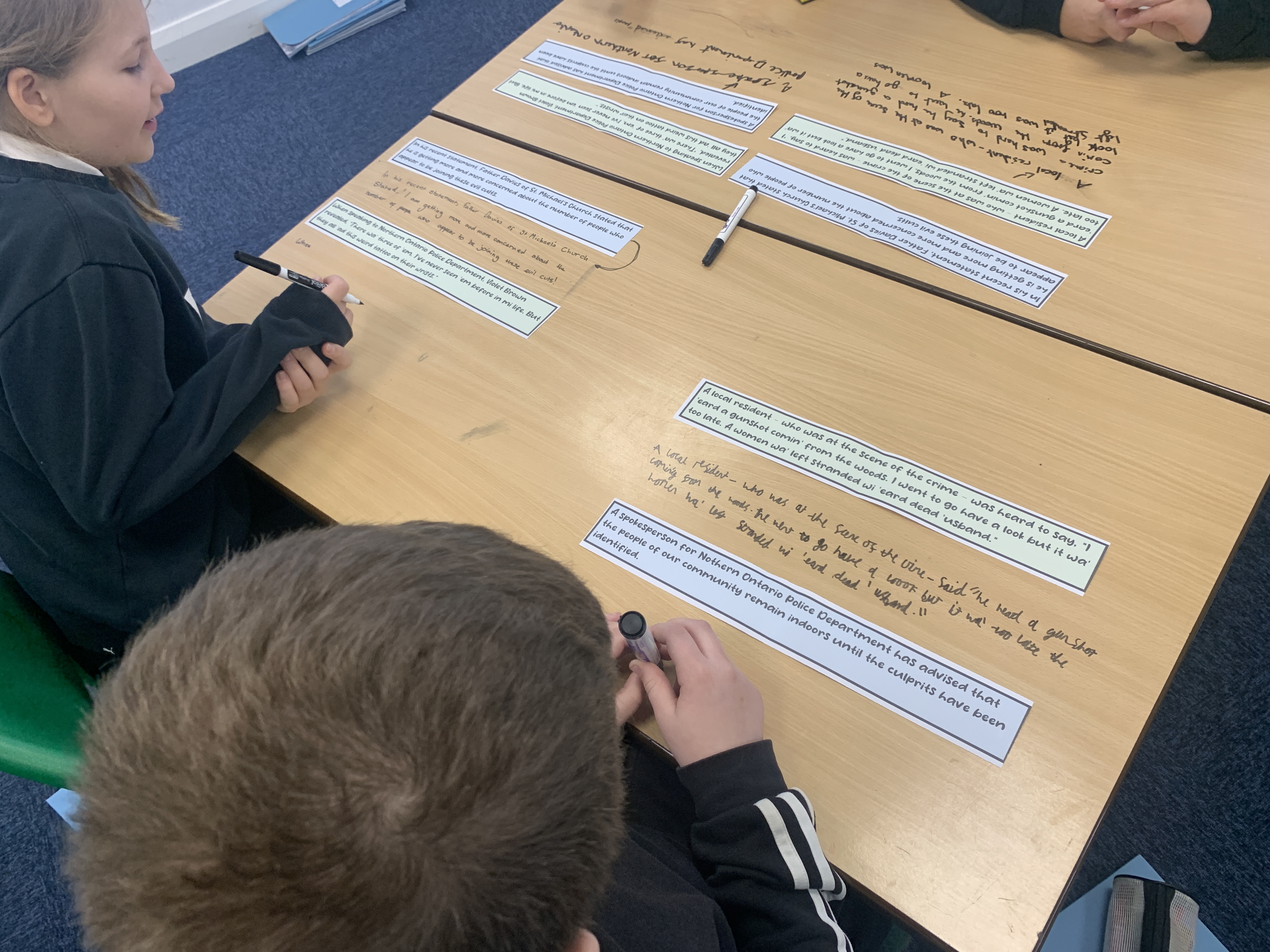 We used skills such as direct and indirect speech, emotive language and cohesive devices to create a gripping yet informative news article.
