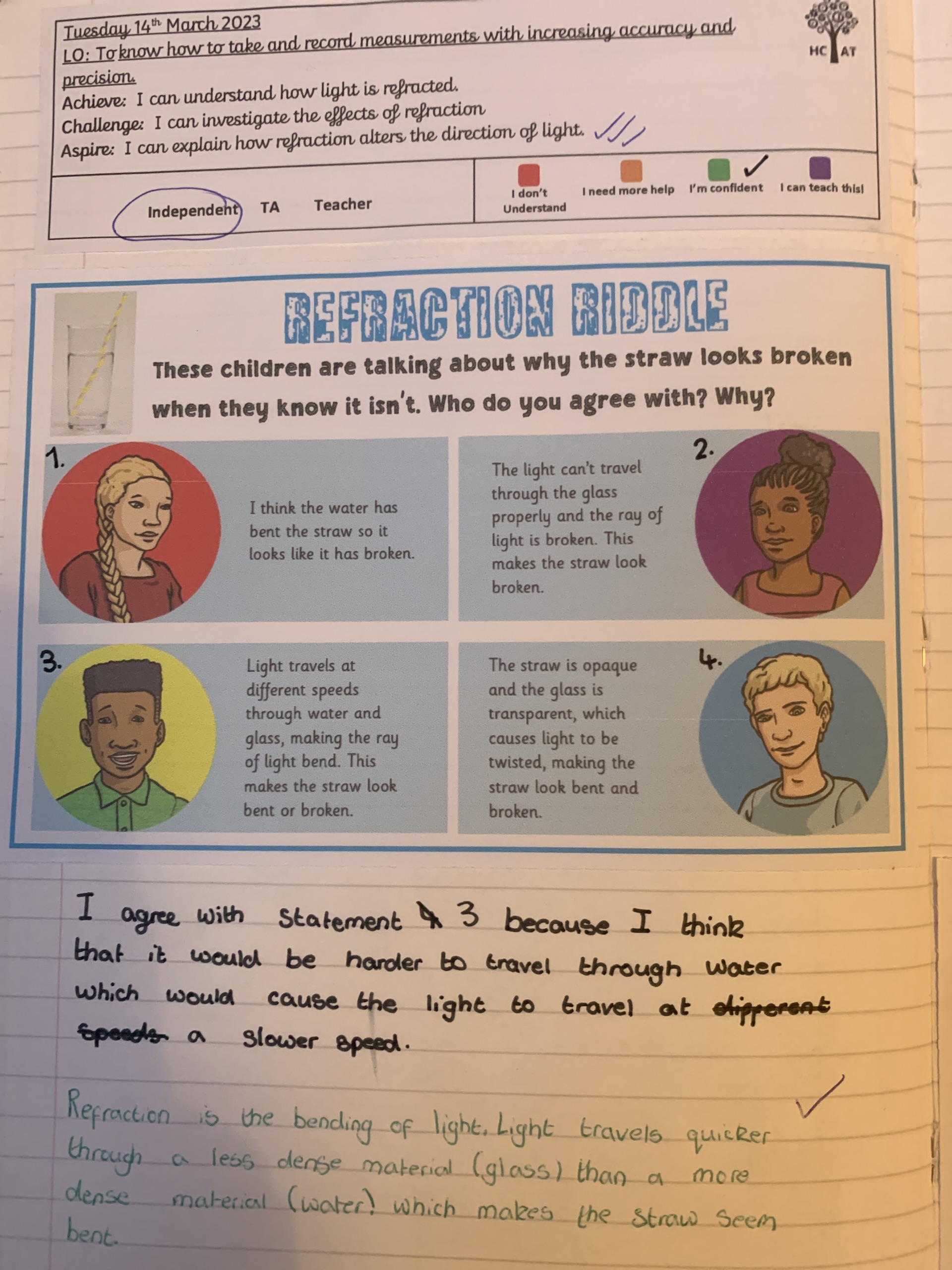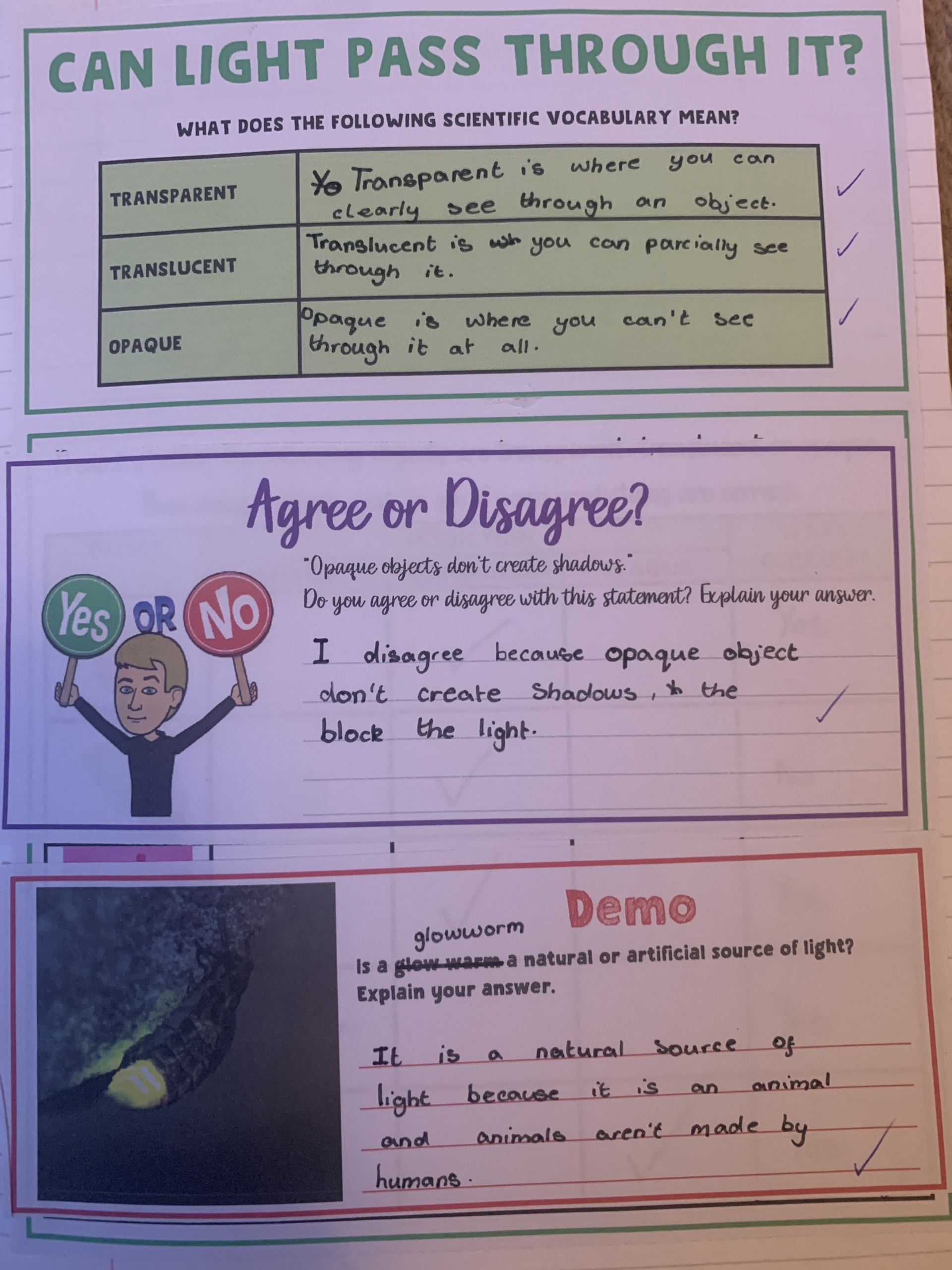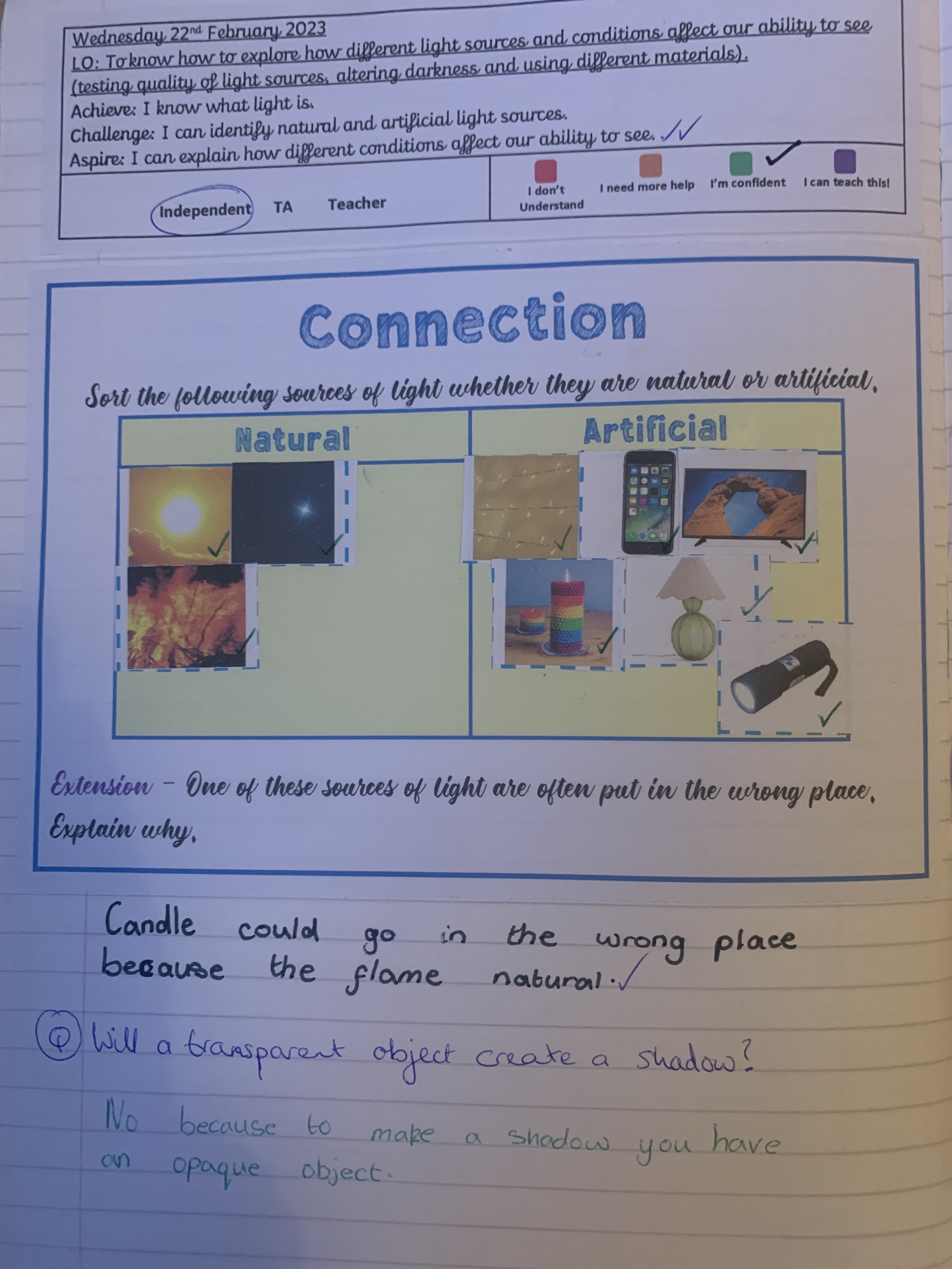 During this unit, we learnt all about artificial and natural light sources, how light travels in straight lines and leads to the creation of shadows. We also learnt about the angles of incidence and reflection, as well as the refraction of light and the composition of white light when split by a prism.