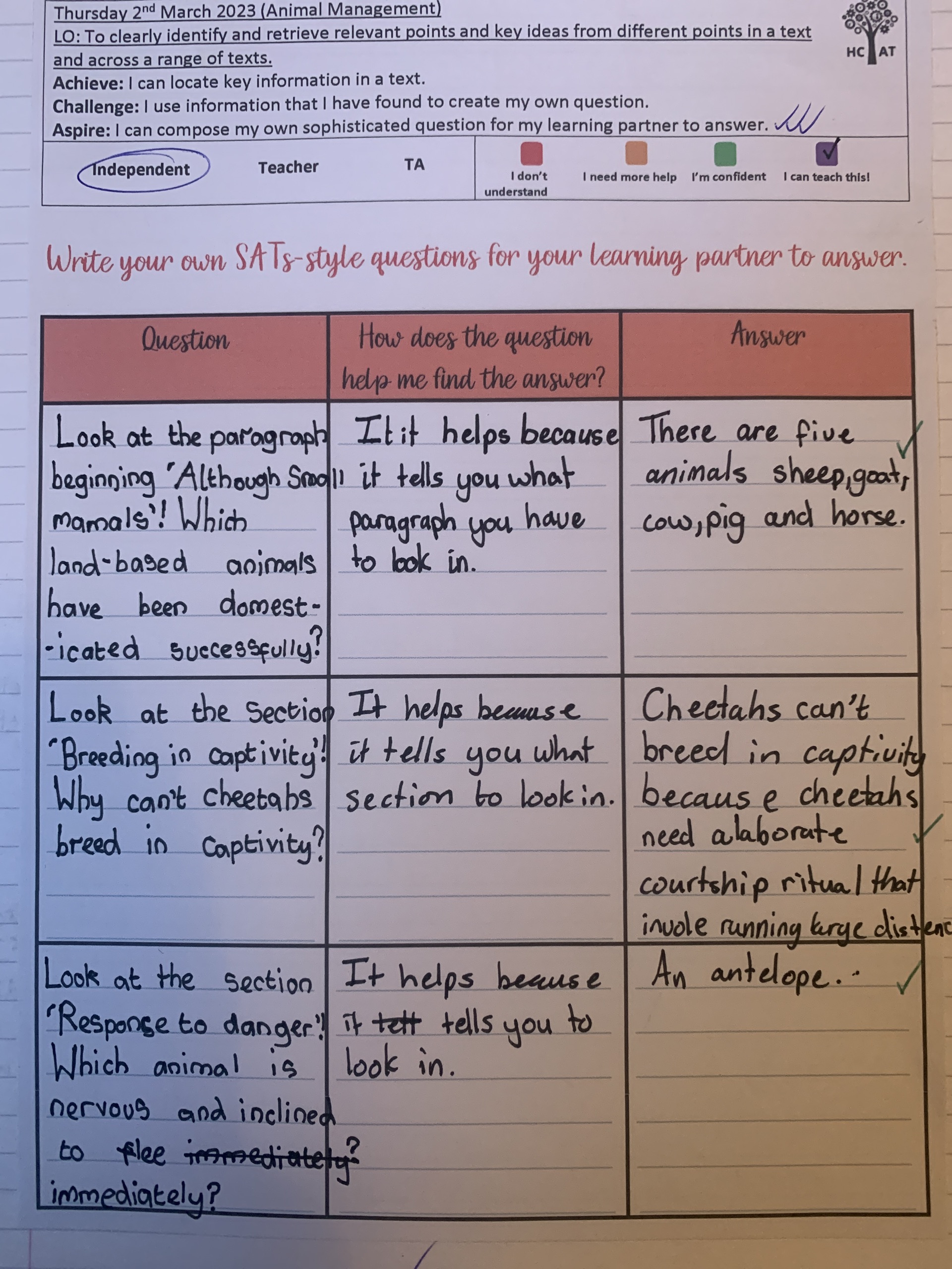 We've discussed ways to locate and extract relevant information from the text and enjoyed writing our own 'SATs-Style' questions.