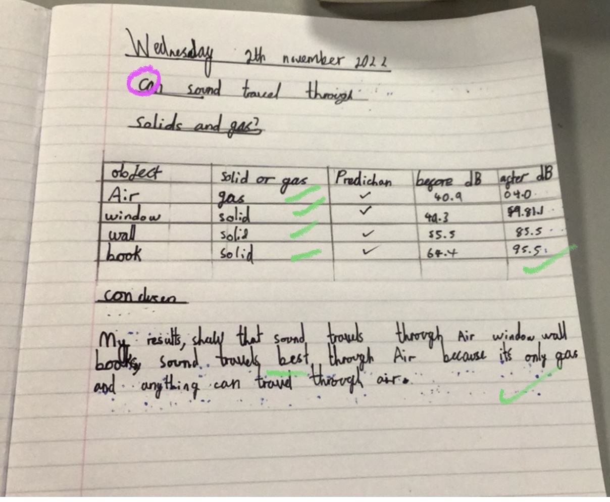 In Science we looked at the question, Does Sound travel through solids and gases? We thought sound travelled through some solis buttered not sure about some metals. We decided to test it using a decibel meter on the iPads.