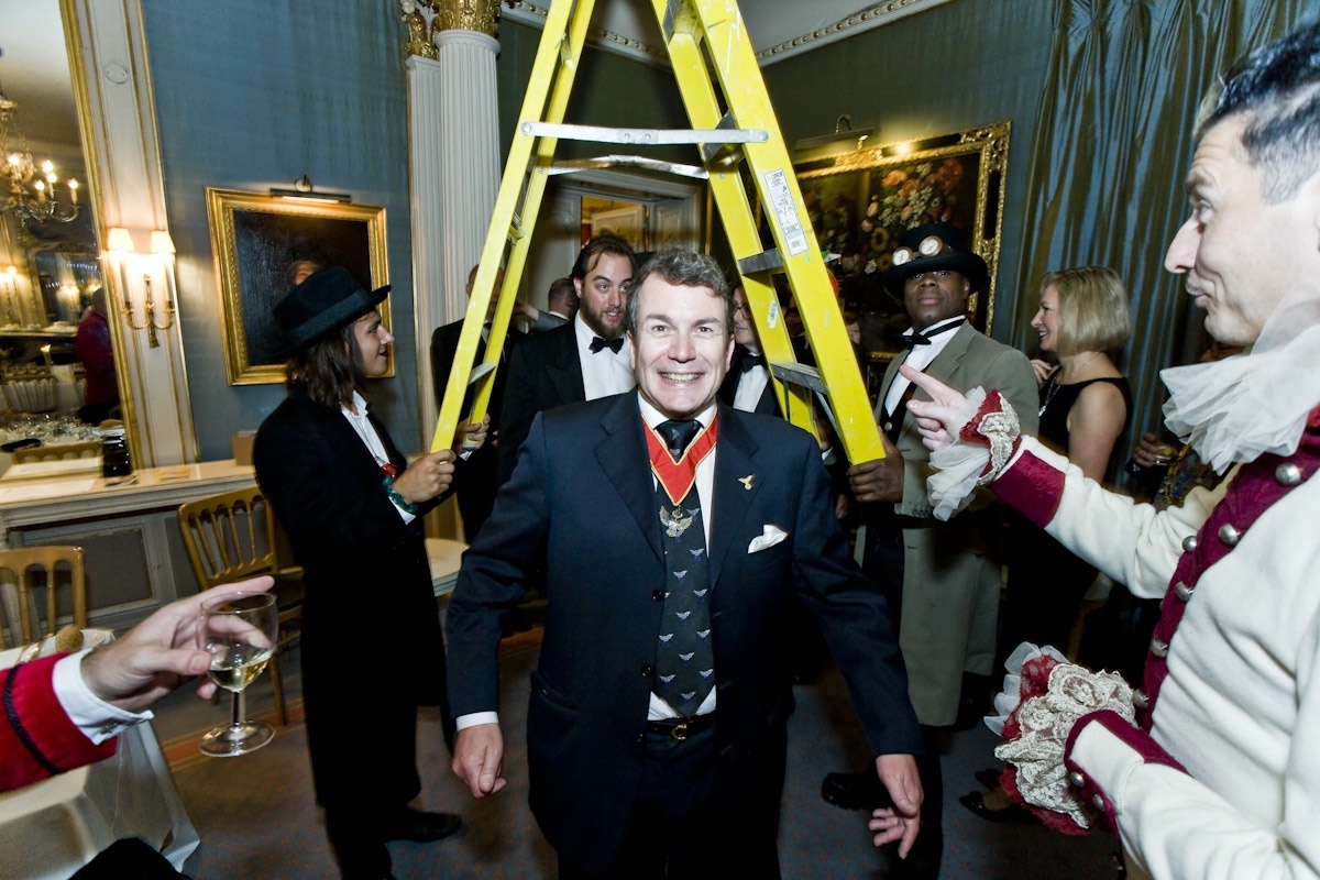 There were almost ritualistic similarities in these clubs on both sides of the Atlantic Ocean: initiating and counting their members in 'thirteens', arranging the dining tables in such a manner that 13 guests were to dine at each, having a compulsory entrance to the club for everyone under an open ladder, while the seats were surrounded by the open umbrellas, figures of the black cats and crows, numbers 13 and the peacock feathers and the tables featured spilt salt and crossed knives...