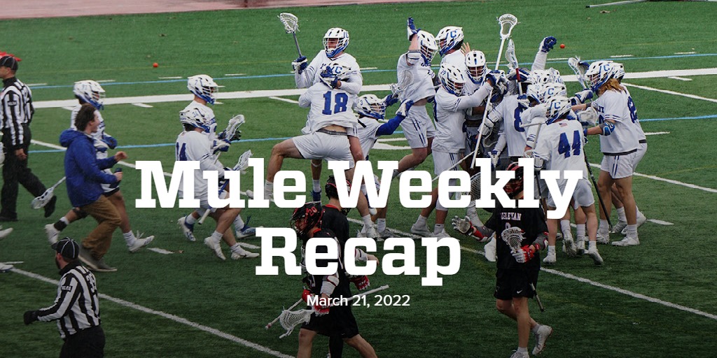 With the clock ticking away, Wesleyan regained possession with only seconds remaining, and a last-second heave was picked out of the air by goaltender Matt Suffredini, securing the Colby victory. Jack Goller and Ryan Darby led the Mules with two goals apiece. First-year Matt Stein tallied four points, with one goal and three assists.