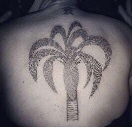 Riscos que Fernanda trouxe para sua pele, tatuando um butiazeiro em suas costas. Enraizado em seu corpo e nas terras de Tapes.