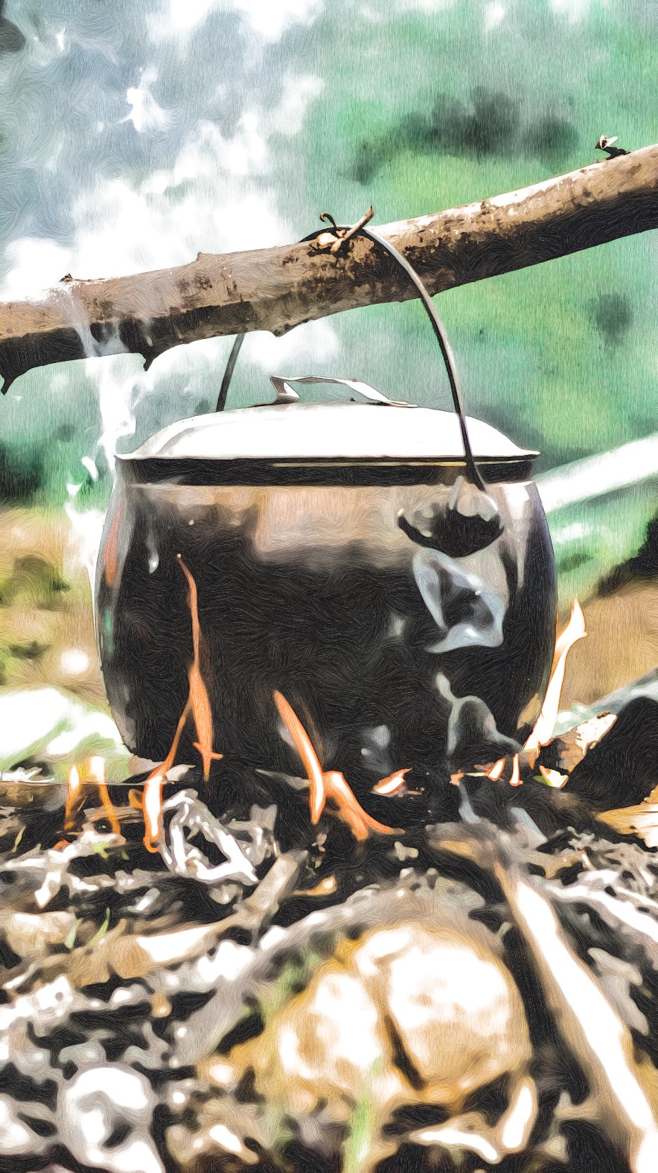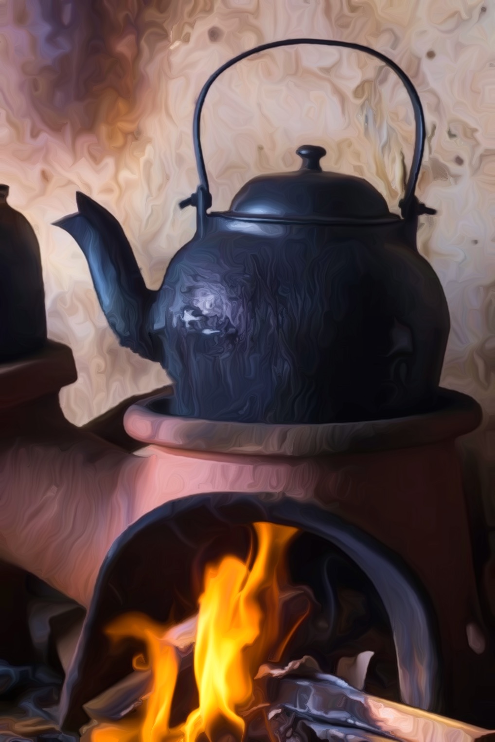 É quase manhã e a chaleira de ferro já está no forno a lenha.