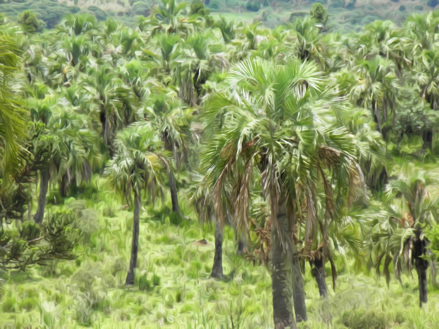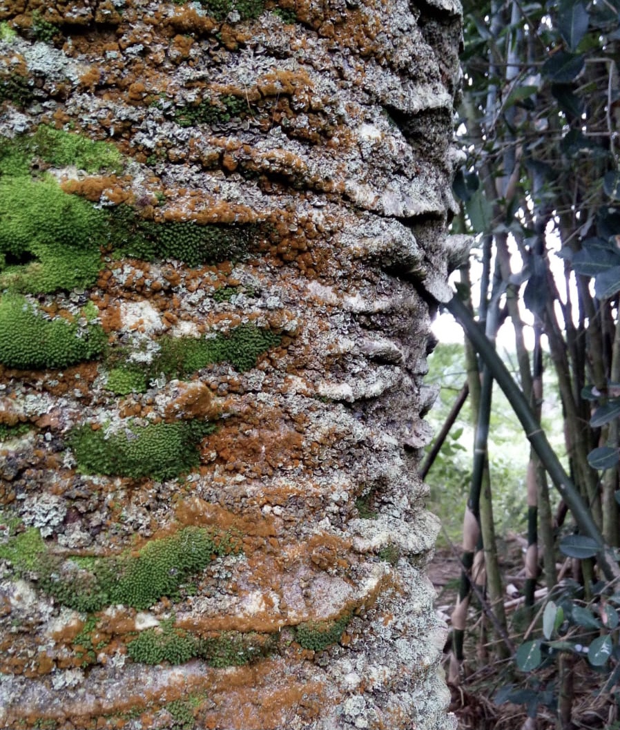 Enquanto o butiazal permanece intacto pela garantia de lei que proíbe o corte da planta, os butiazeiros envelhecem com dignidade, expondo sua idade no tronco por meio de riscos em alto relevo, parecidos com ranhuras.