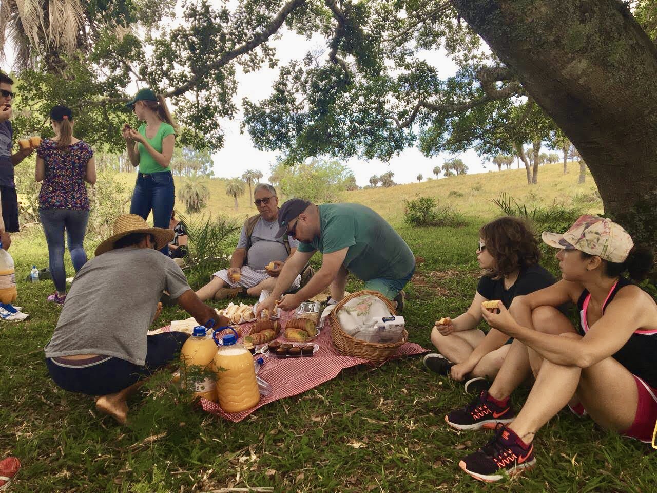 Em meio ao passeio, os participantes puderam se deliciar com um piquenique recheado de produtos da região, incluindo, claro, bolos e cup cakes de butiá, entre outras comidas feitas com o fruto.