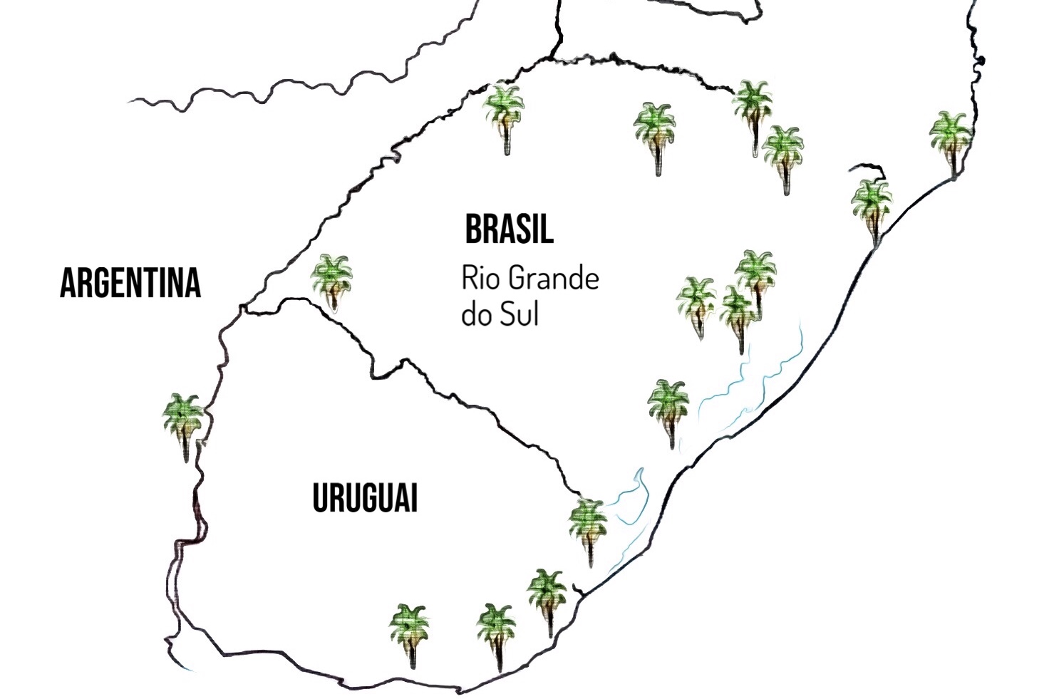No trajeto, territórios que possuem butiazeiros, ou onde o butiá tem um valor histórico e cultural.