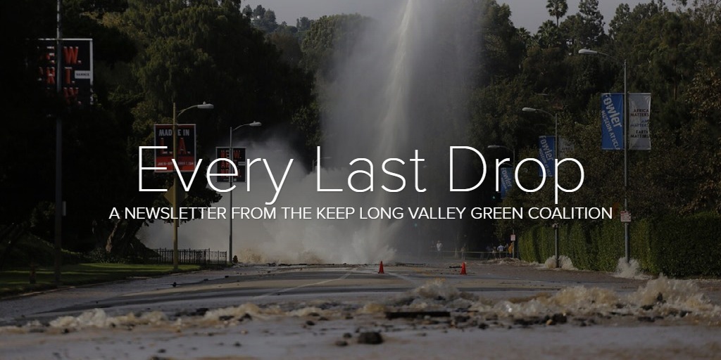 Water loss from leaks is avoidable, and the future of the Eastern Sierra and Los Angeles requires that we avoid it. Every last drop of water which is extracted from the Owens Valley, Long Valley, and the Mono Basin is precious, especially among worsening drought cycles. Water is life, and we here in the Eastern Sierra do not deny Angelenos the water they need. It is not controversial to say water should not spout into the streets, marooning cars and causing sinkholes, but LADWP would rather dewater Long Valley, pump more groundwater in the Owens Valley, and ignore the worsening situation at Mono Lake before they do what is right for Angelenos and Eastern Sierra residents alike: fixing their pipes and making this waste of water a thing of the past.