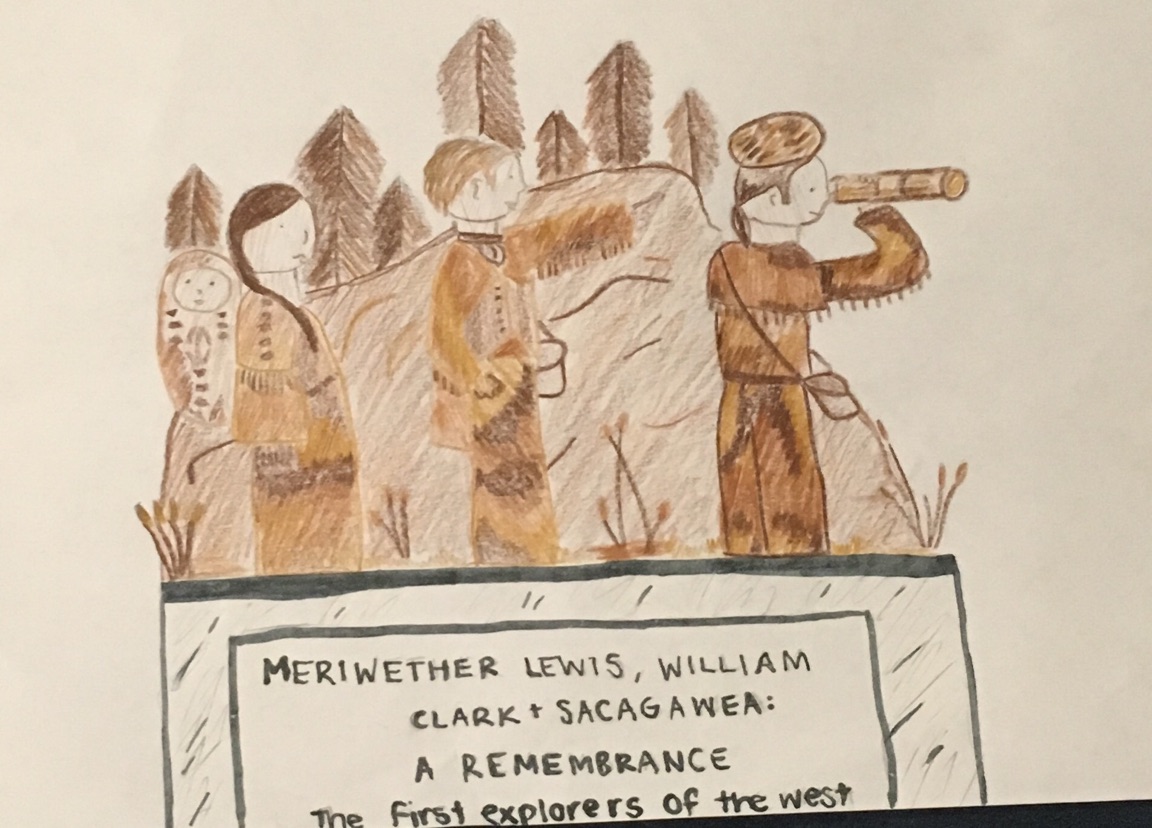 This monument is in honor of Lewis and Clark and Sacagawea. All three of these determined people lead an expedition into the west of the newly discovered world, and encountered many obstacles and found new species.