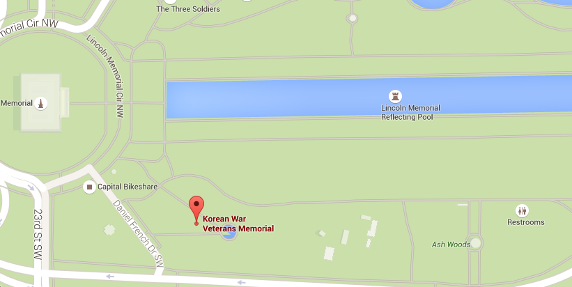 To the right of the Korean Memorial and directly to the left side of the reflecting pool.