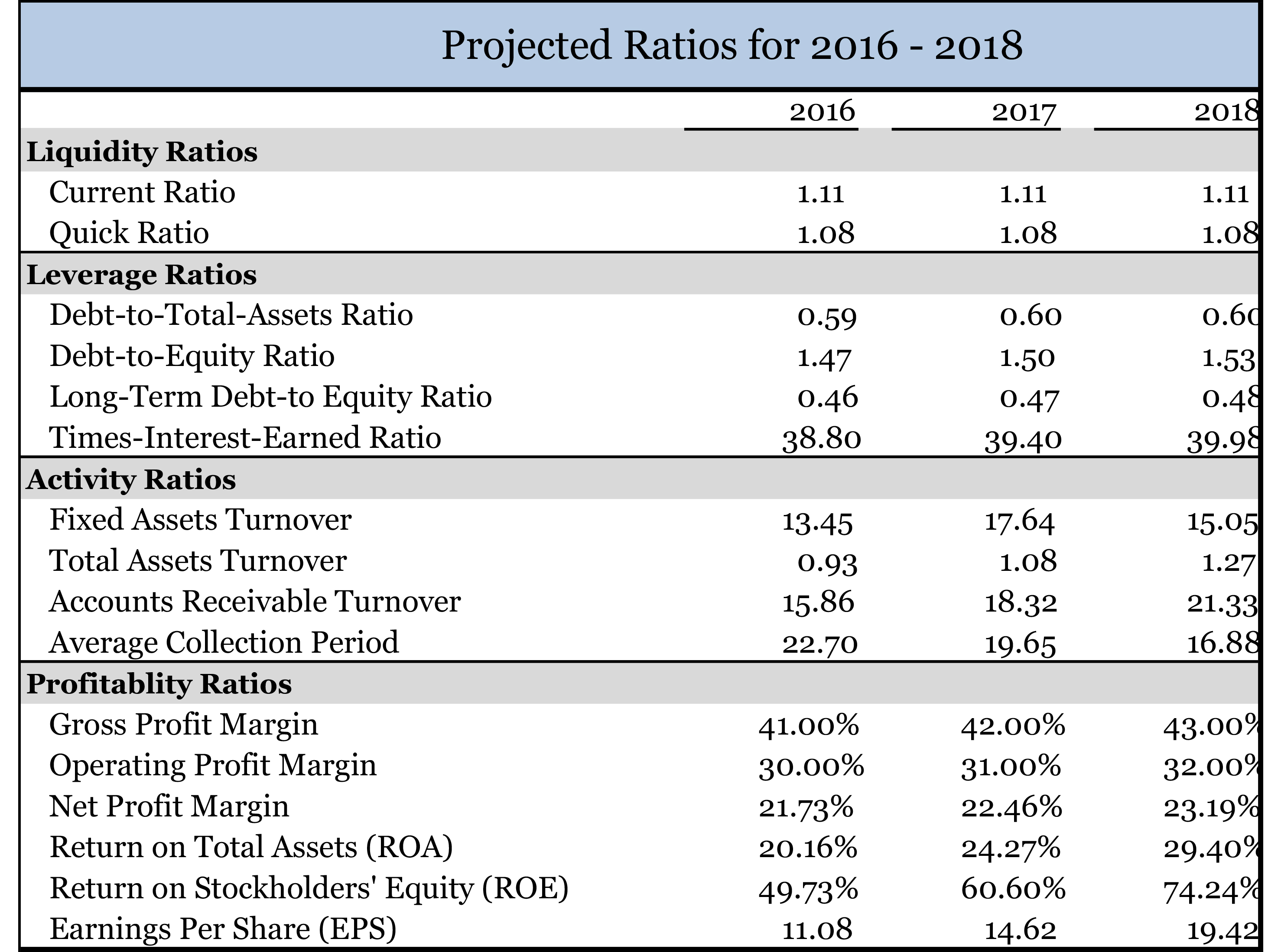 Projected Ratio Analysis
