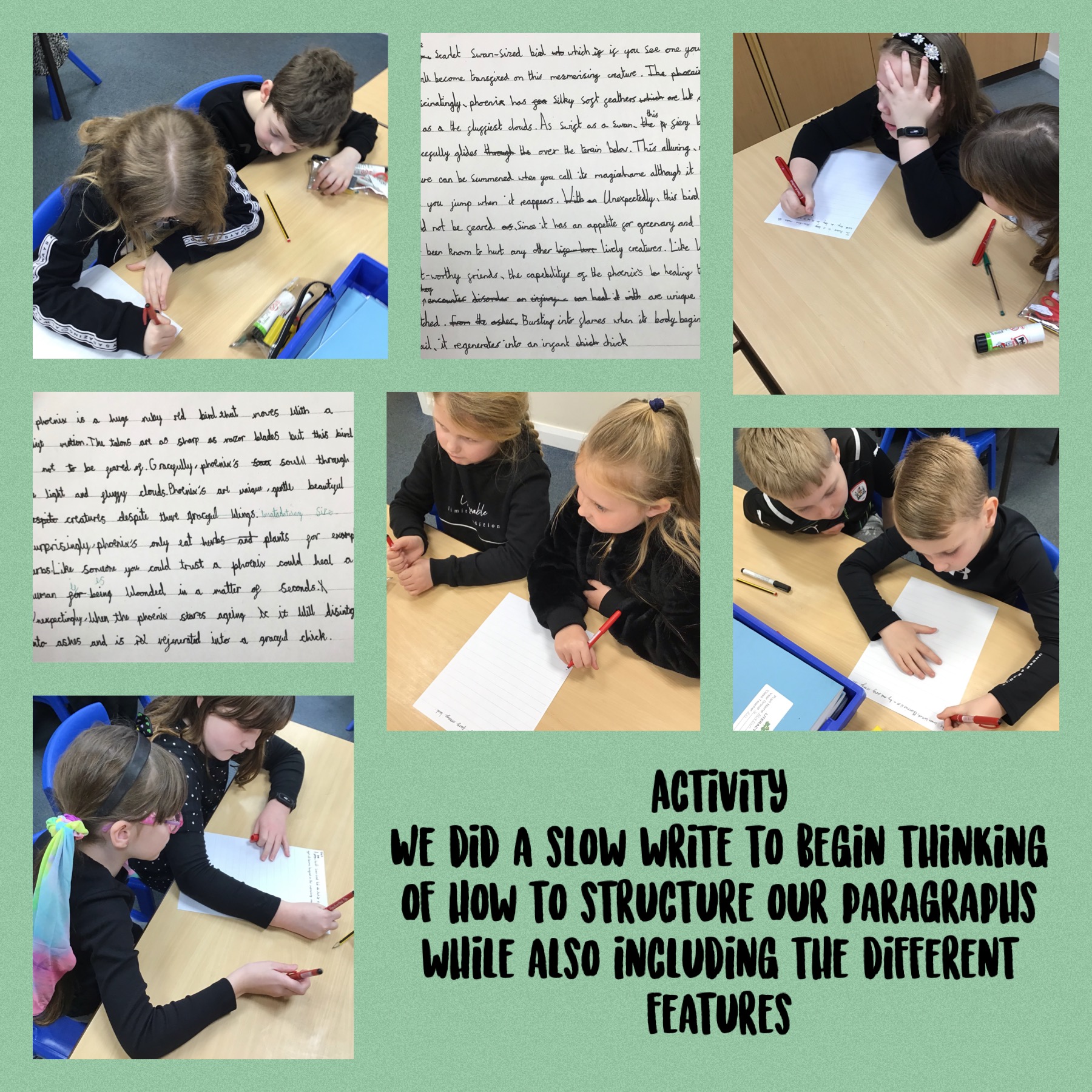We then thought about how we would structure our writing by working together. It was tricky because we had to include all of the features we had learnt about!