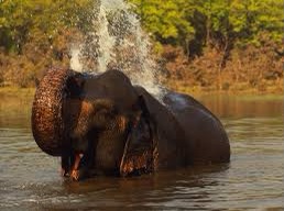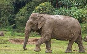 Elephants are herbivores: they eat a range of plants, including grasses, fruit, and roots. An adult elephant consumes about 100 kg (220 pounds) of food and 100 litres (26 gallons) of water per day.