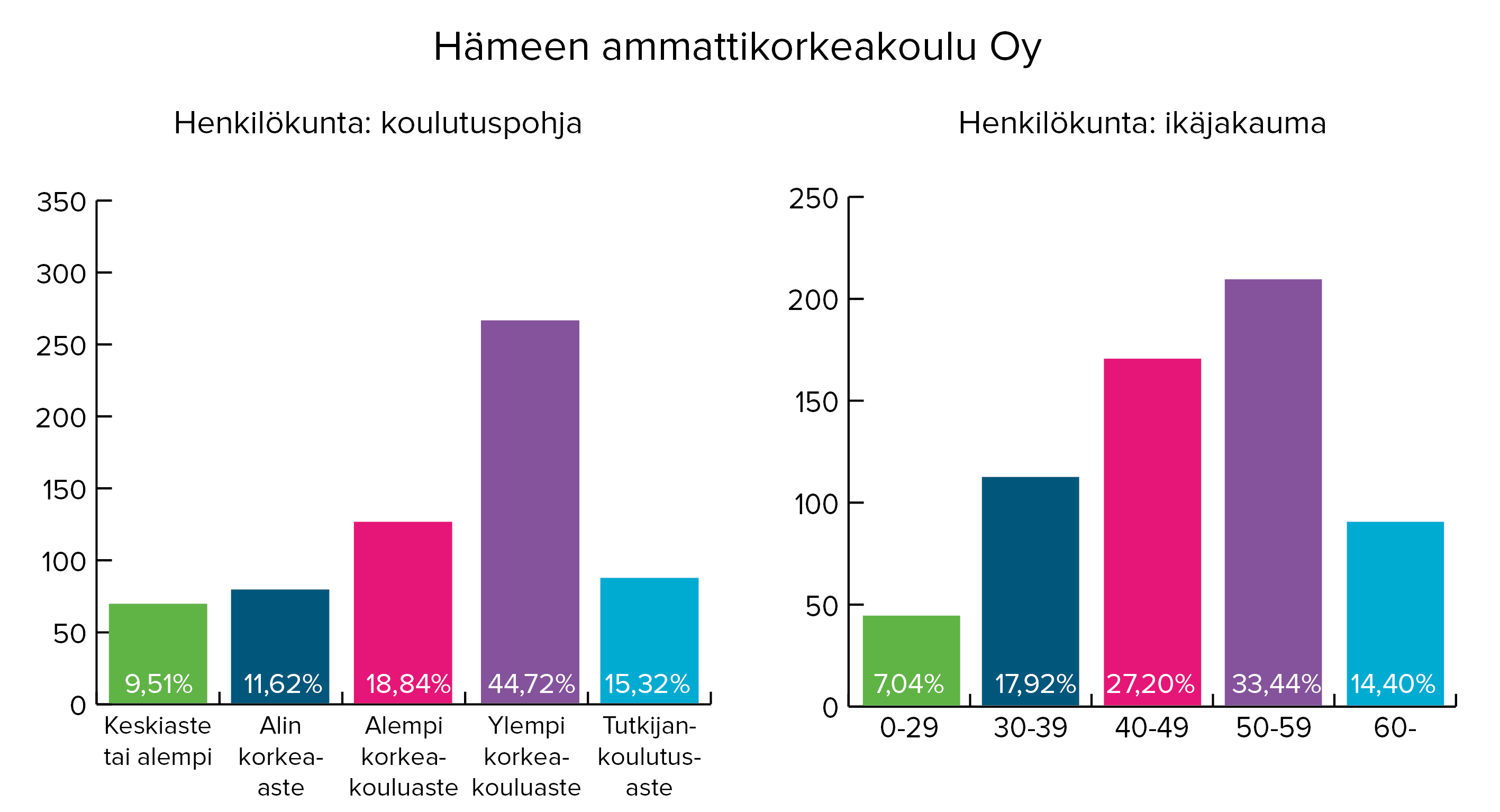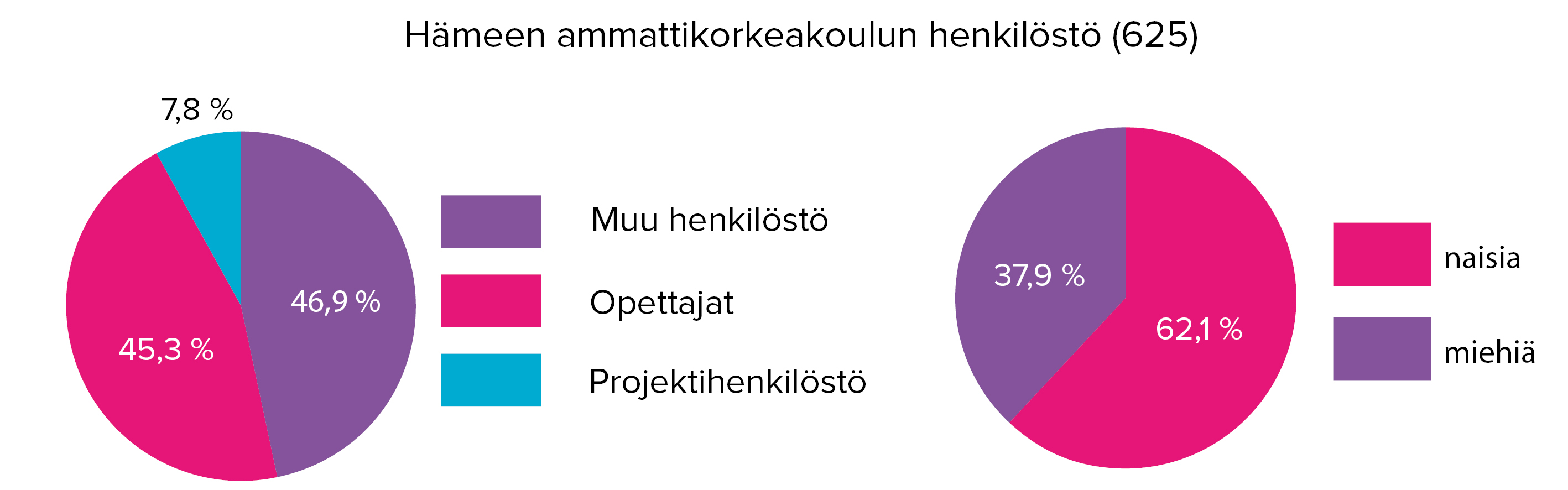 Ammattikorkeakoulujen rahoitusta on vähennetty viime vuosien aikana merkittävästi. Rahoituksen väheneminen ja vuonna 2011 tehtyjen aloituspaikkaleikkausten vaikutukset näkyivät meillä vuonna 2015 toteutettuina henkilöstövähennyksinä. Emme myöskään välttyneet irtisanomisilta. Vuosien 2012–2015 aikana Hämeen ammattikorkeakoulu on joutunut irtisanomaan 21 henkilöä, ja kokonaisuudessaan henkilöstön vähennys on tuona ajanjaksona ollut 140. Suurimmat muutokset ovat tapahtuneet projekti- ja tukipalveluhenkilöstössä.